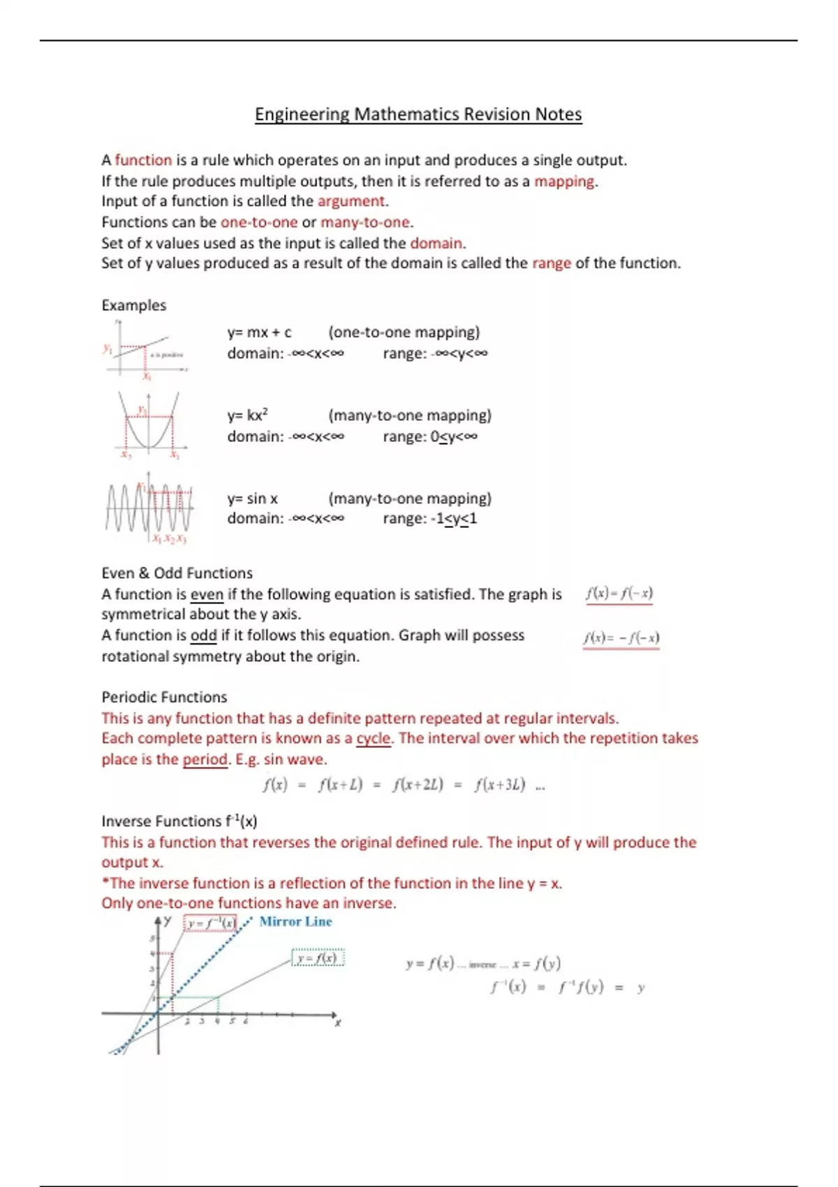 y= sin x (many-to-one mapping)