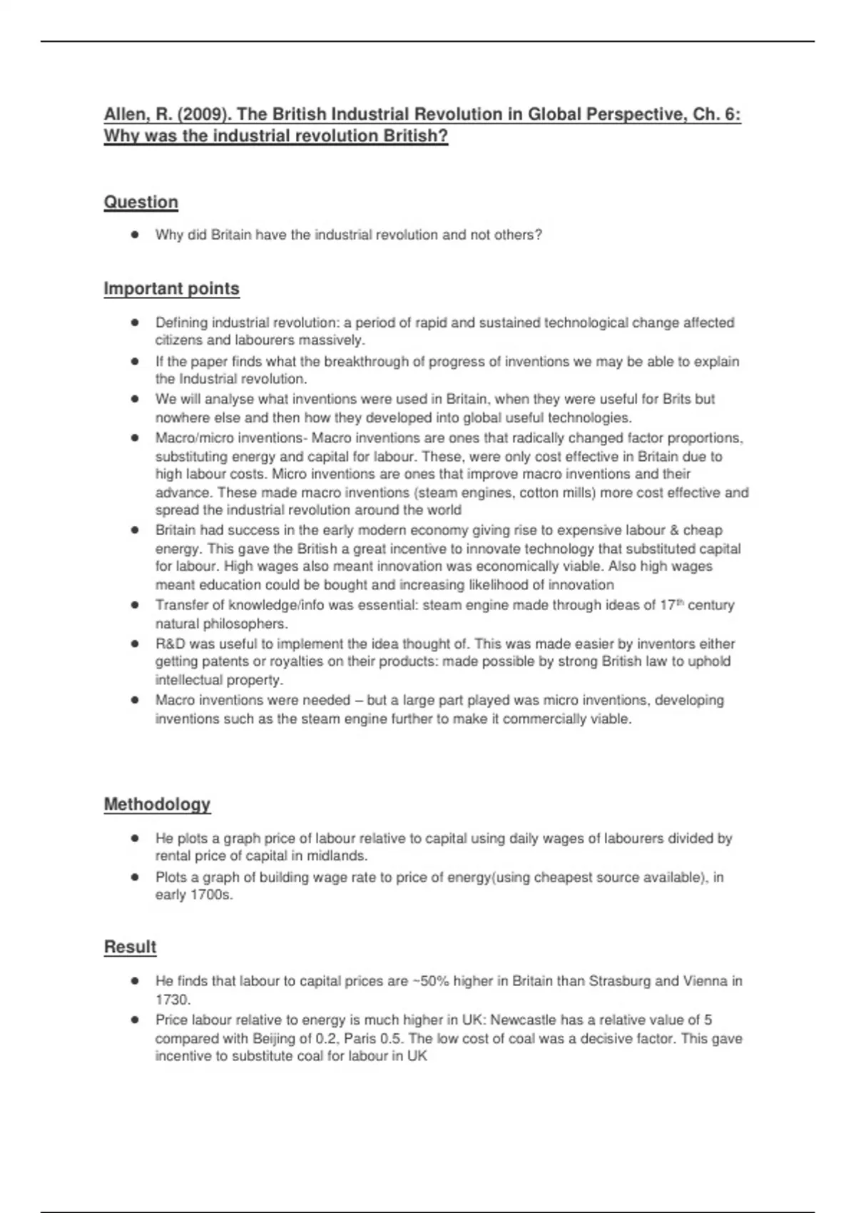 ● He finds that labour to capital prices are ~50% higher in Britain than Strasburg and Vienna in