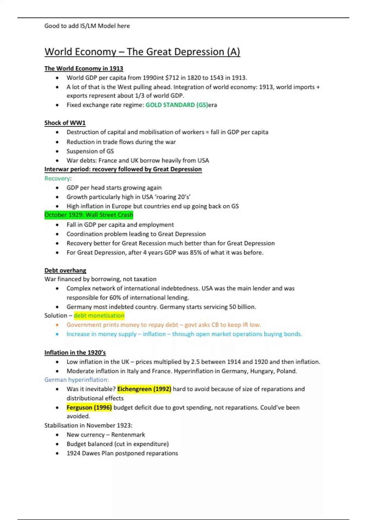 This is a comprehensive and detailed review on; the great depression for EC 104. An Essential Study resource just for YOU!!