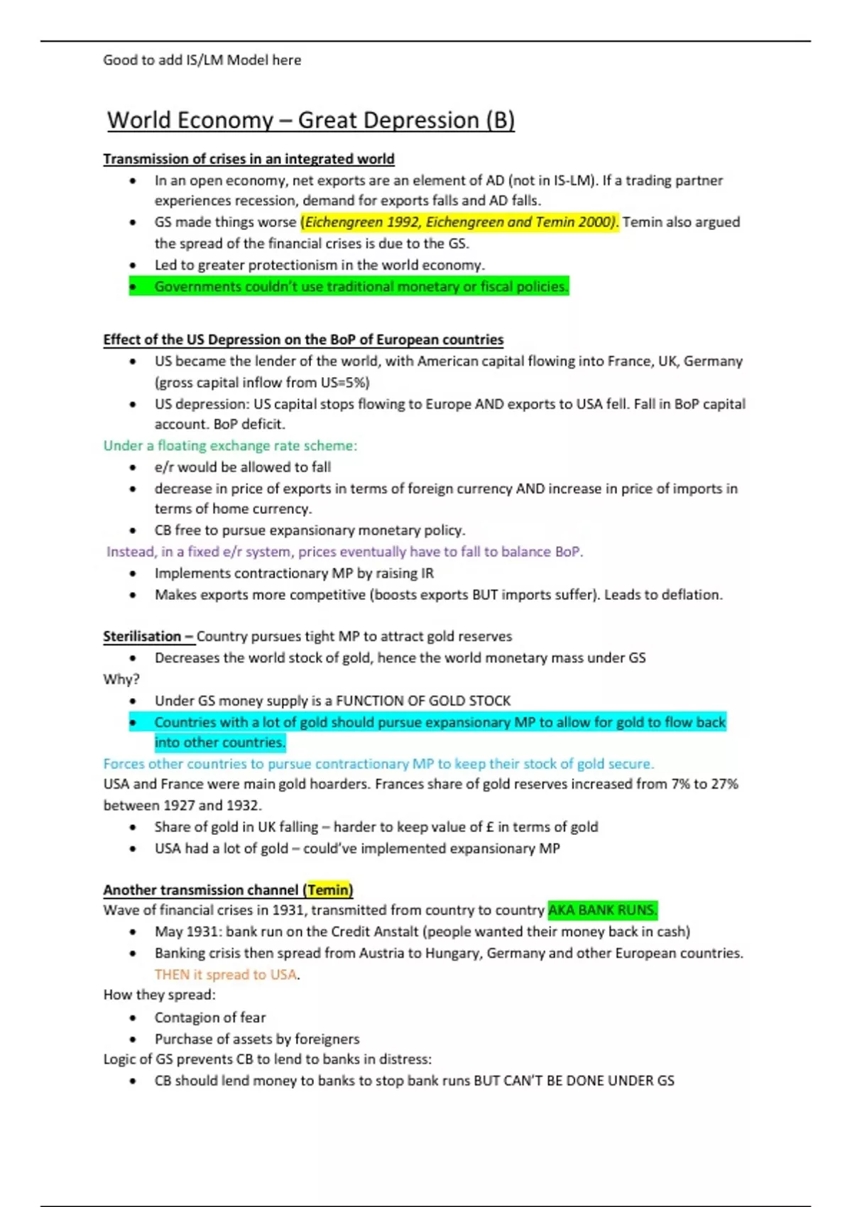 • US depression: US capital stops flowing to Europe AND exports to USA fell. Fall in BoP capital