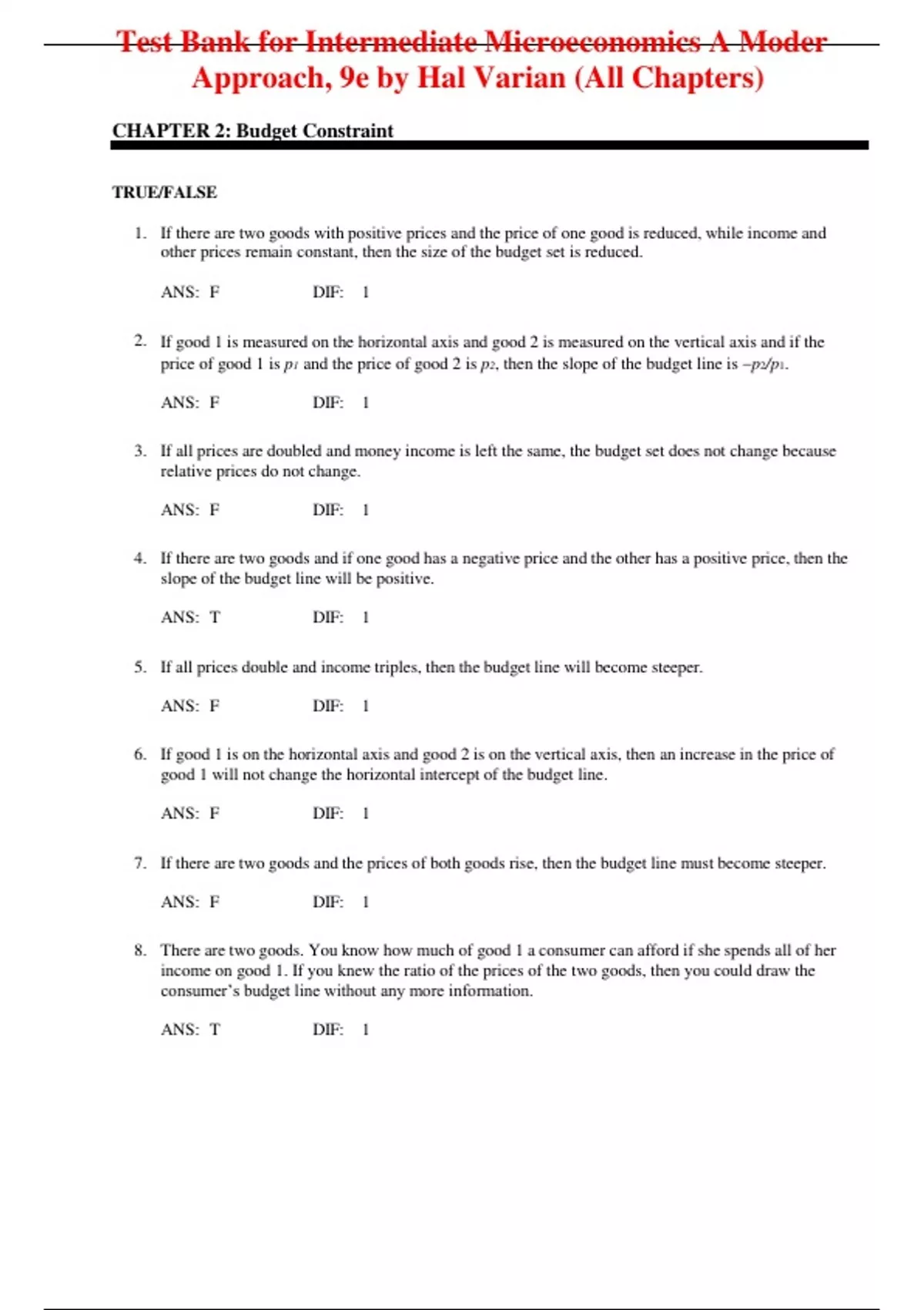 Approach, 9e by Hal Varian (All Chapters)