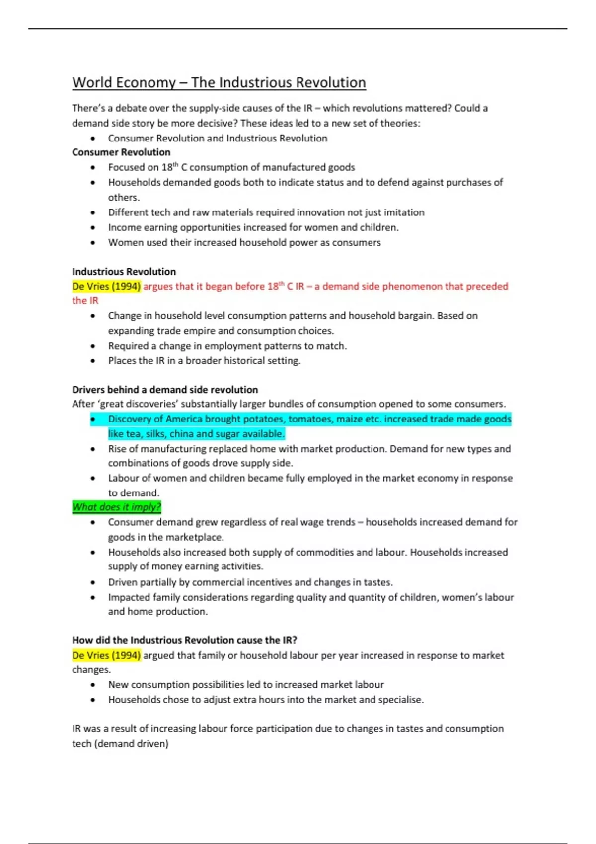 This is a comprehensive and detailed summary on;The industrious Revolution for Ec 104. An Essential Study resource just for YOU!!