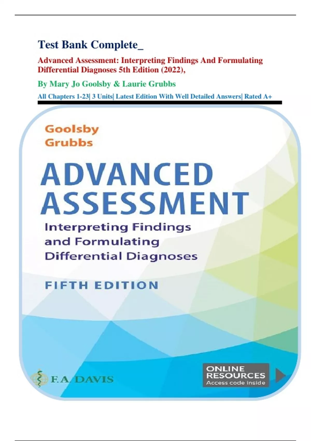 mary jo goolsby: advanced assessment: interpreting findings and formulating differential diagnoses 5 th edition, (2022) tb.