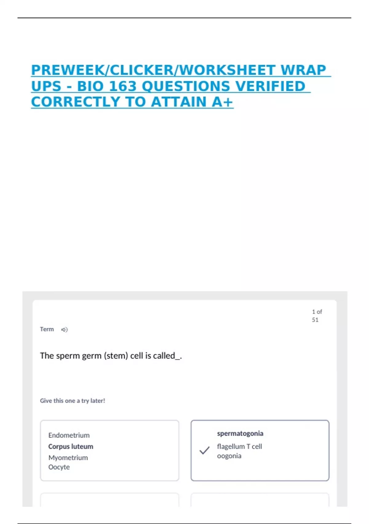 PREWEEK/CLICKER/WORKSHEET WRAP UPS - BIO 163 QUESTIONS VERIFIED CORRECTLY TO ATTAIN A+