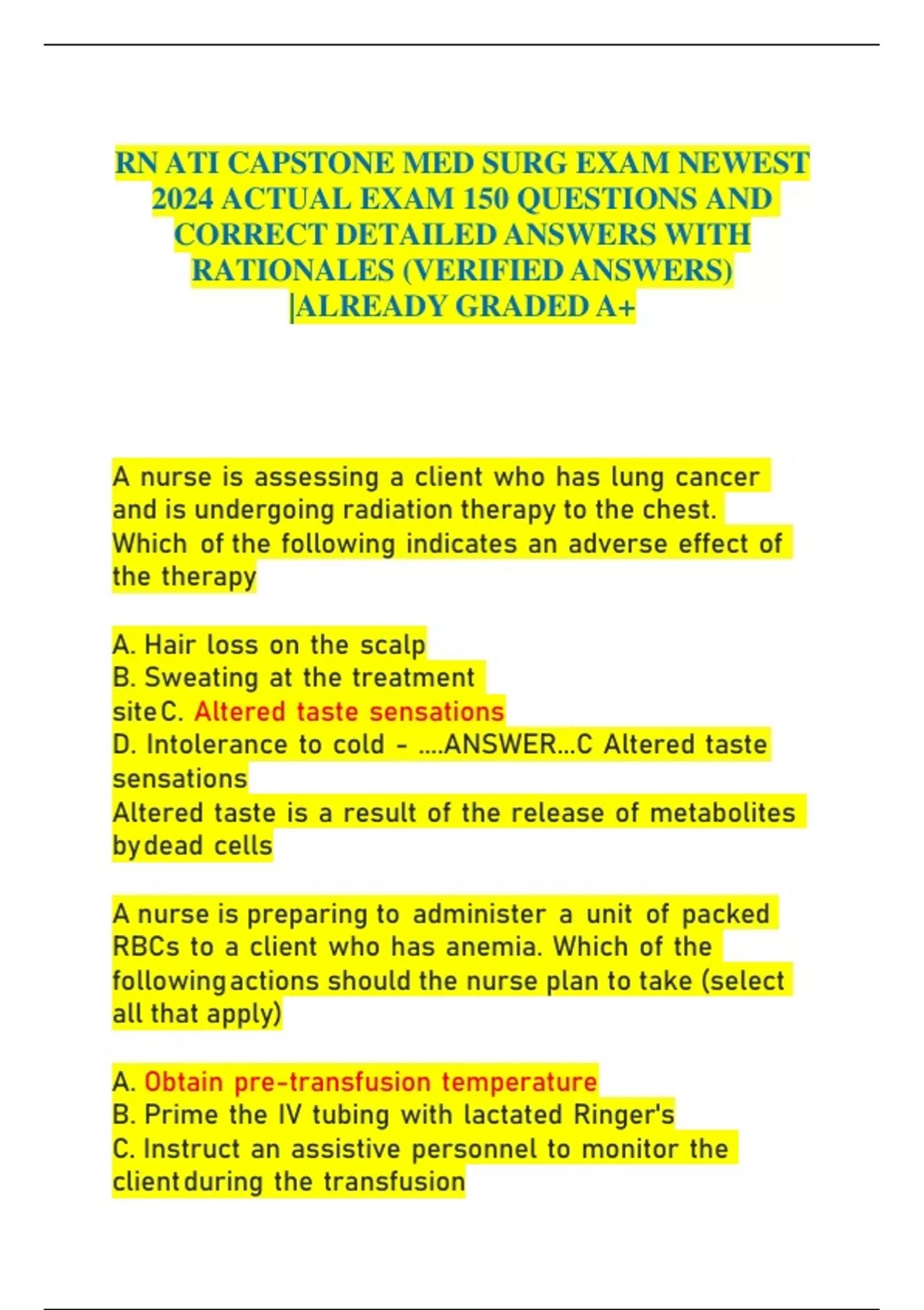 RN ATI CAPSTONE MED SURG EXAM NEWEST