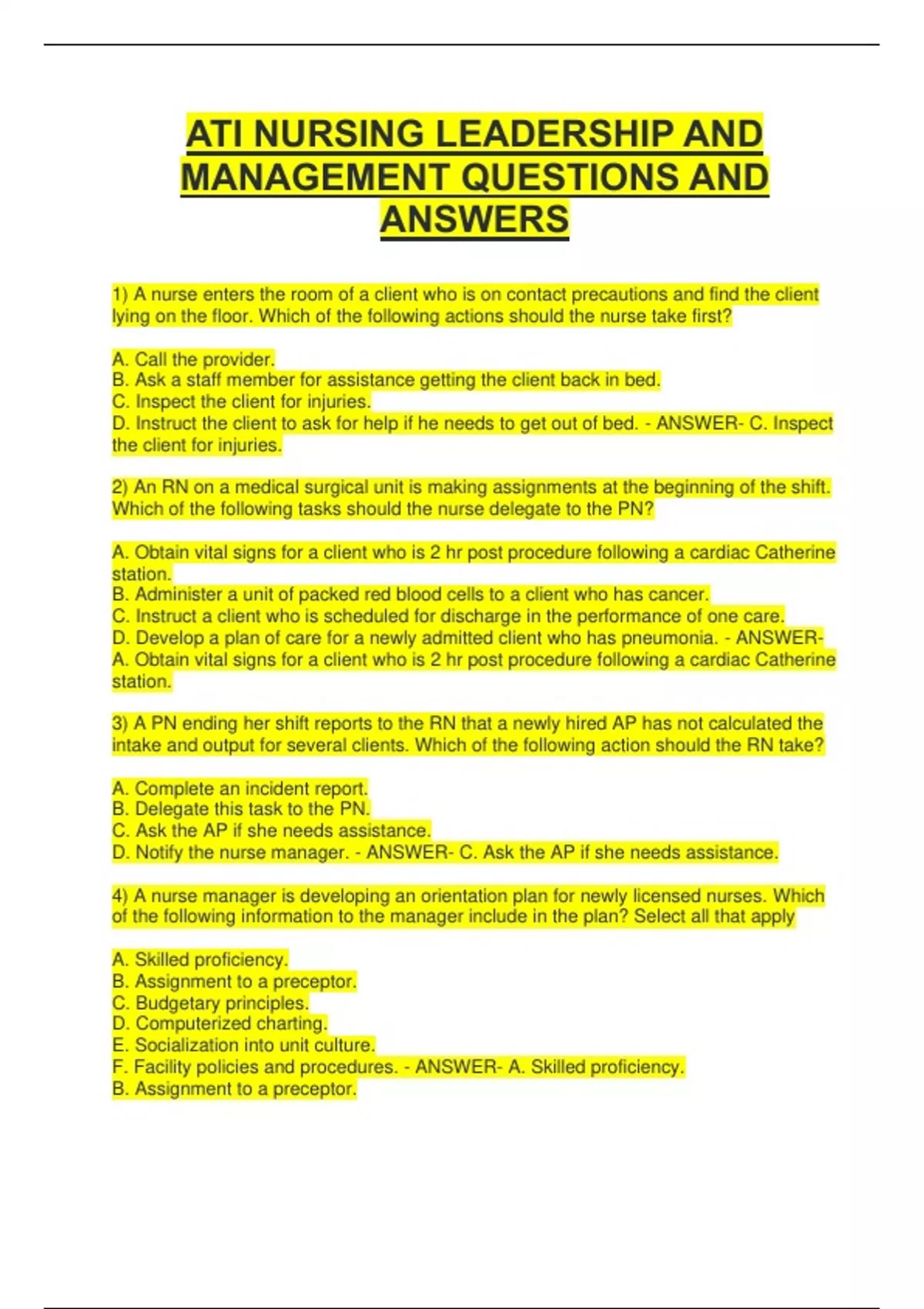 ATI NURSING LEADERSHIP AND