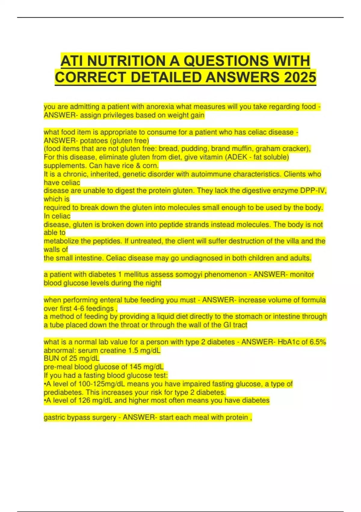 ATI NUTRITION A QUESTIONS WITH