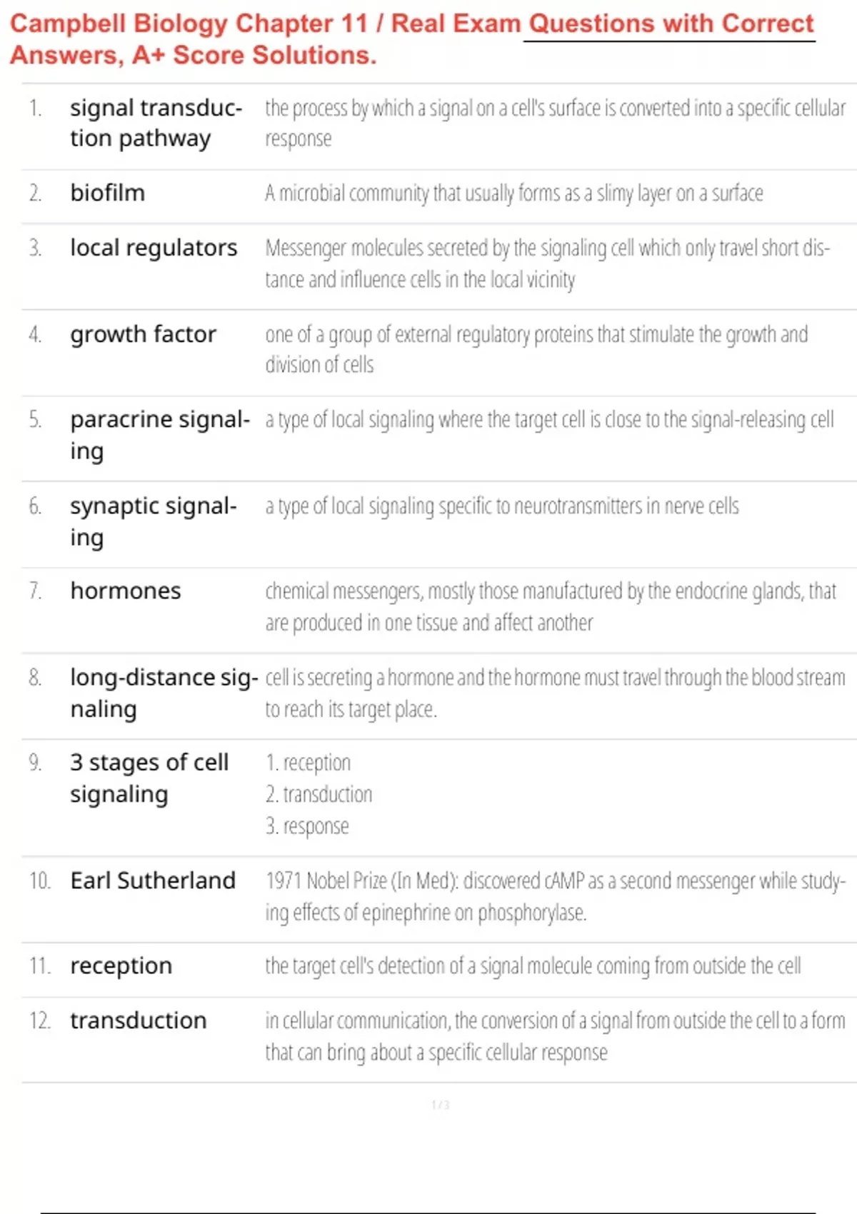 Campbell Biology Chapter 11 / Real Exam Questions with Correct