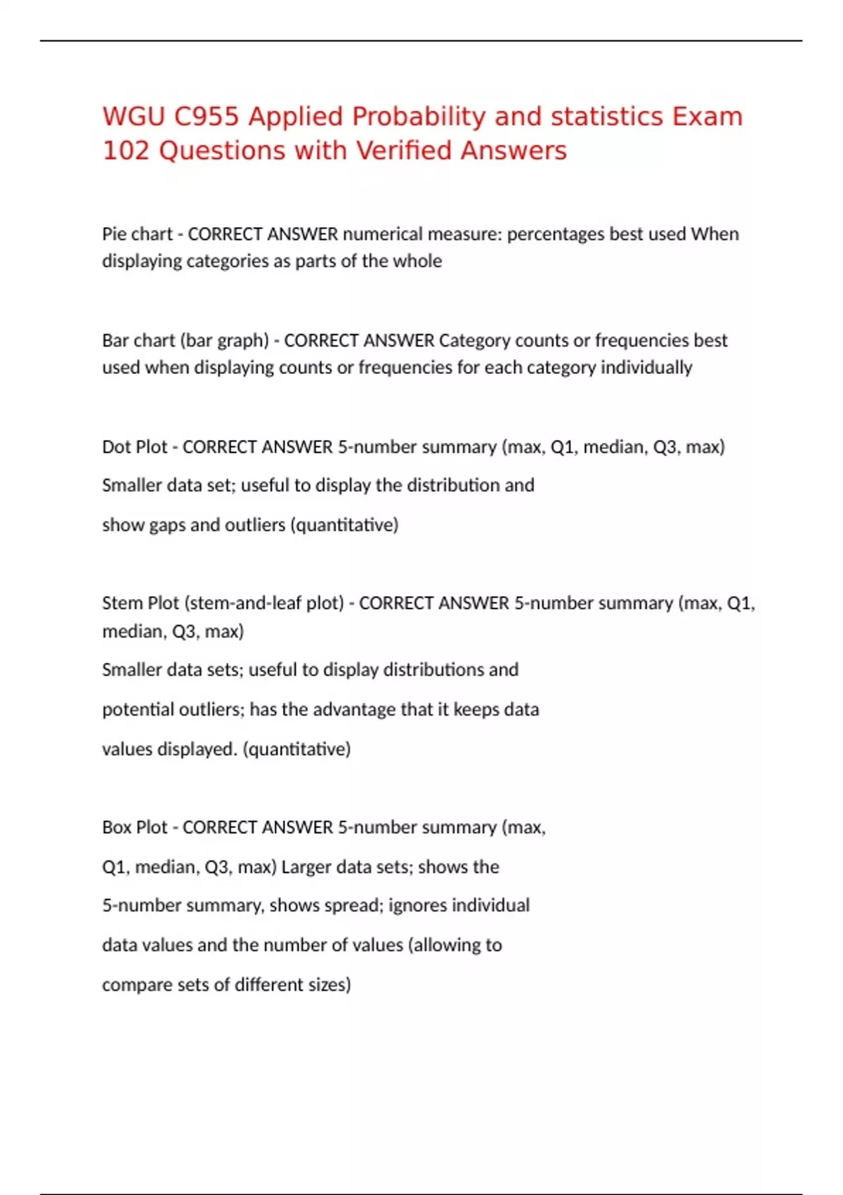 Dot Plot - CORRECT ANSWER 5-number summary (max, Q1, median, Q3, max)