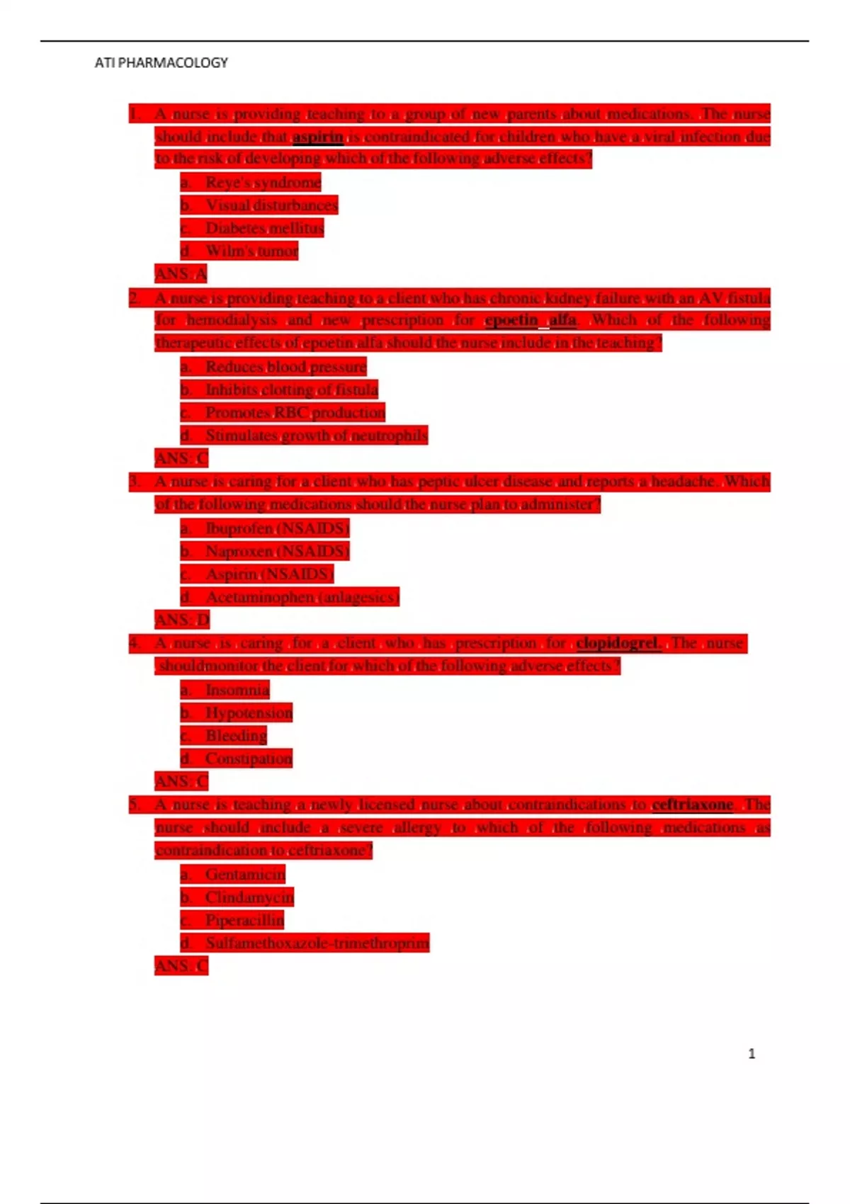 ,ATI PHARMACOLOGY