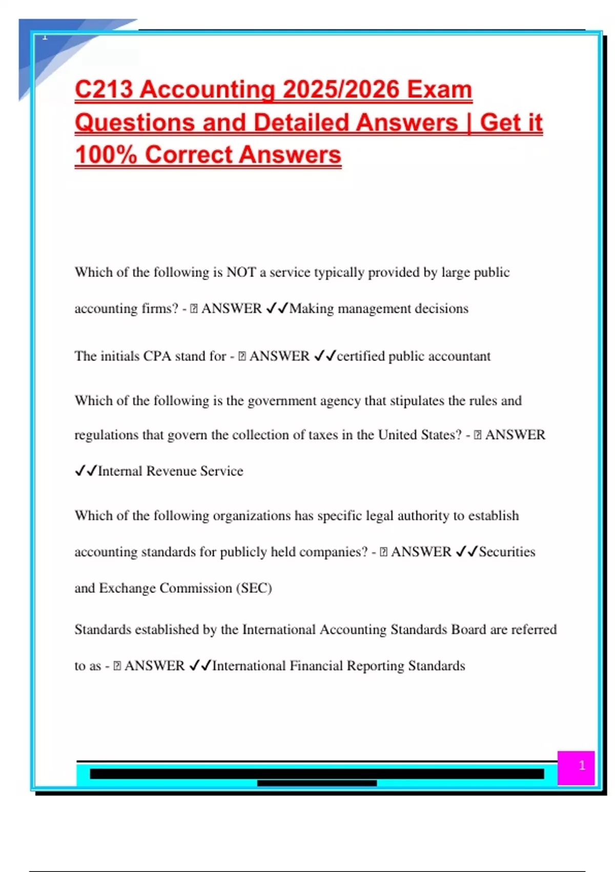C213 Accounting 2025/2026 Exam