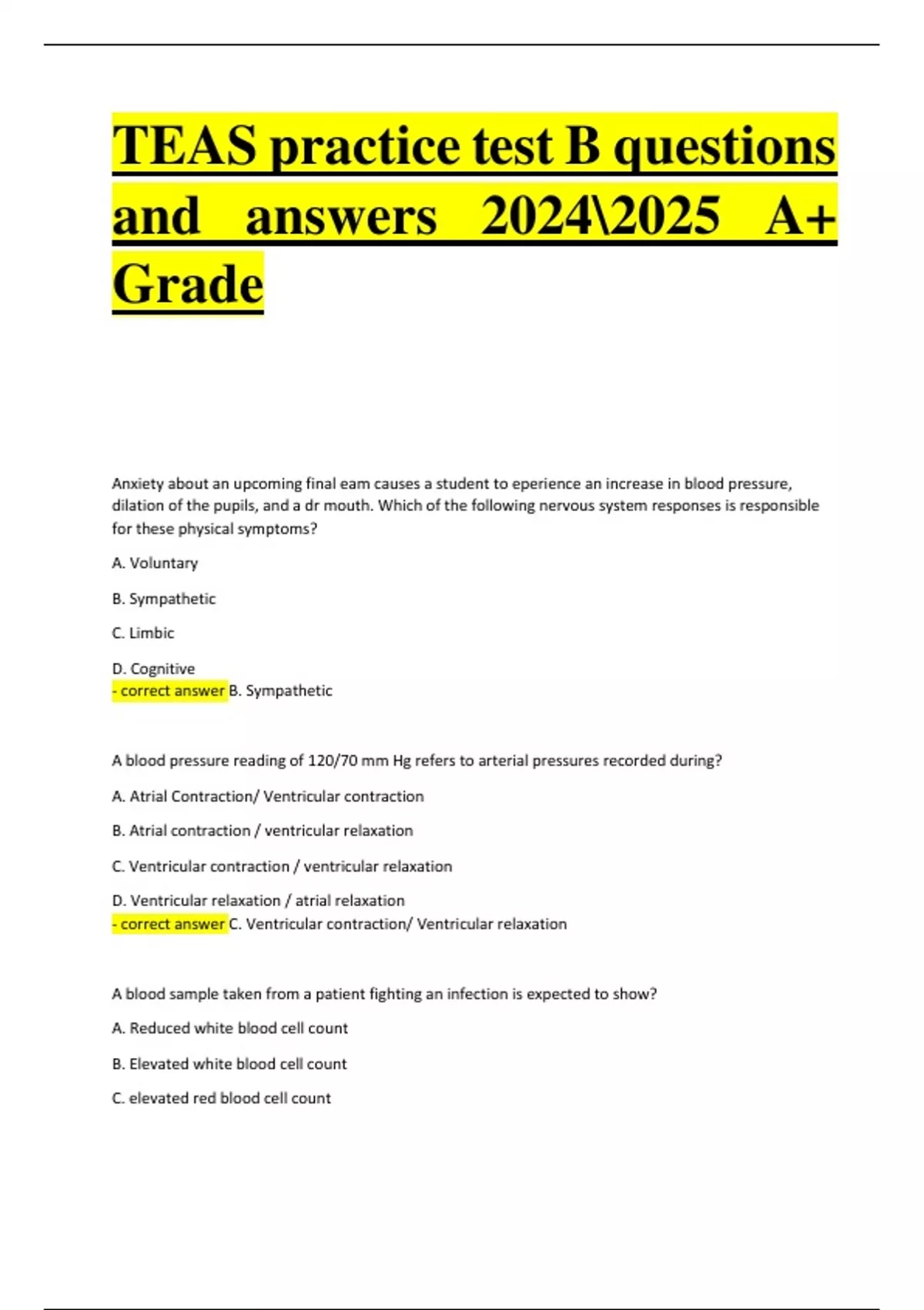 - correct answer B. Elevated white blood cell count