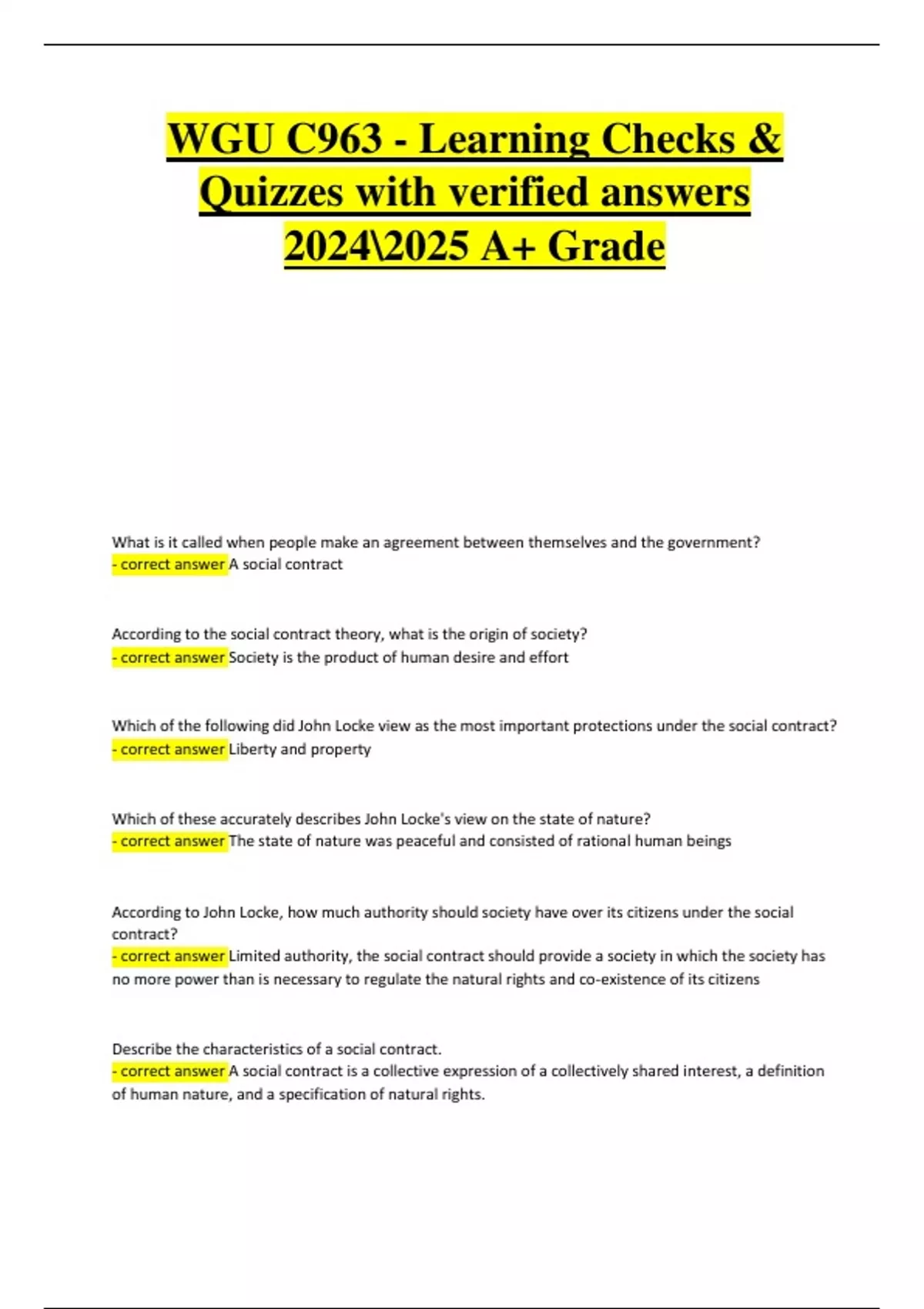 - correct answer Limited authority, the social contract should provide a society in which the society has