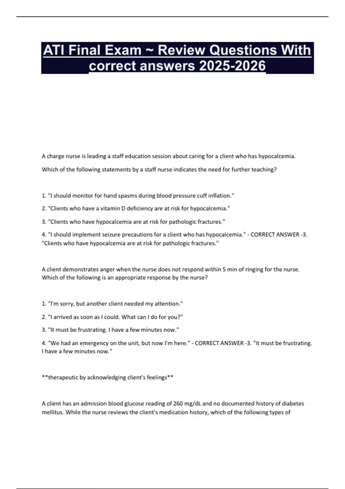 3. "Clients who have hypocalcemia are at risk for pathologic fractures."