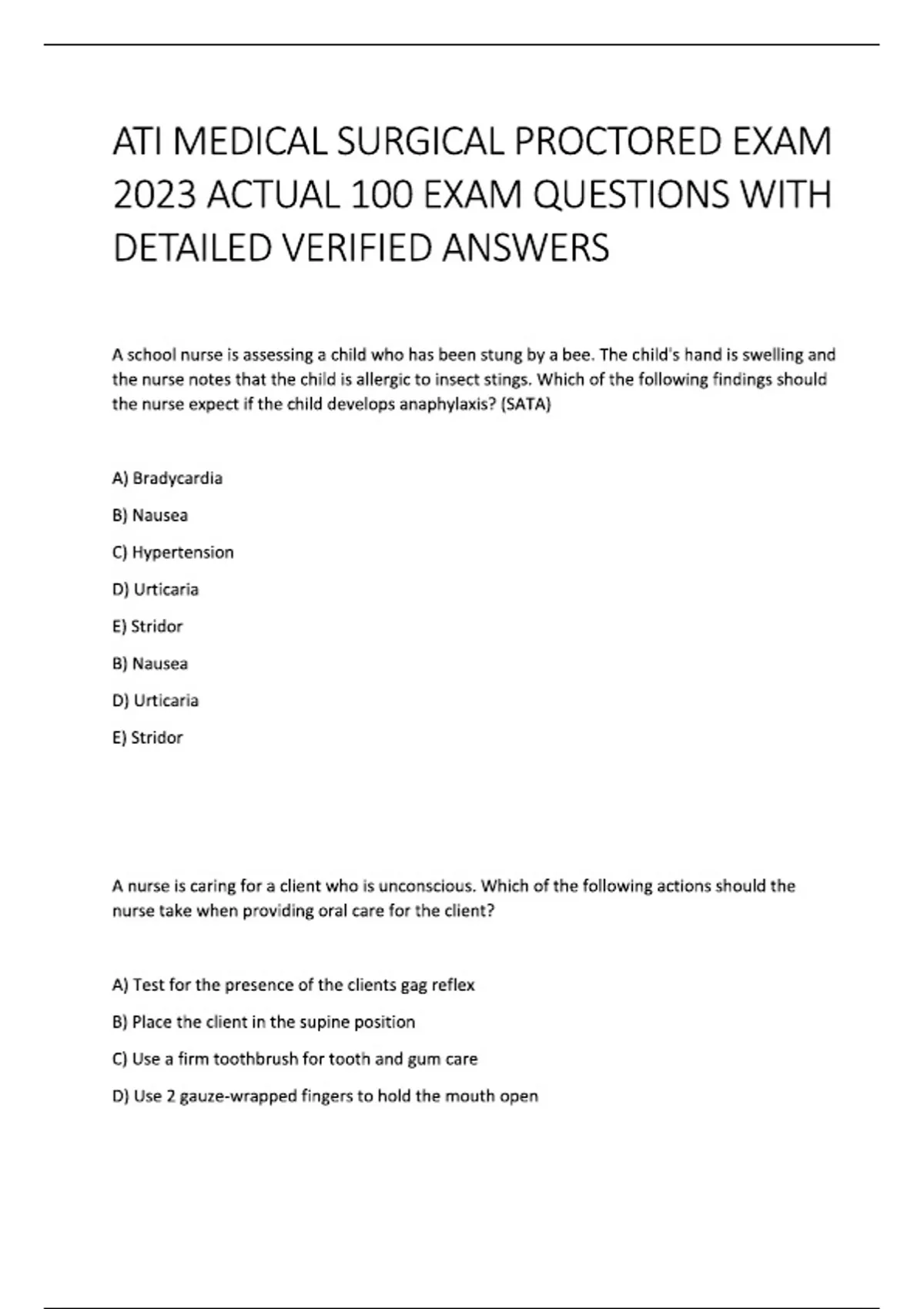 ATI MEDICAL SURGICAL PROCTORED EXAM 2023 ACTUAL 100 EXAM QUESTIONS WITH DETAILED ANSWERS