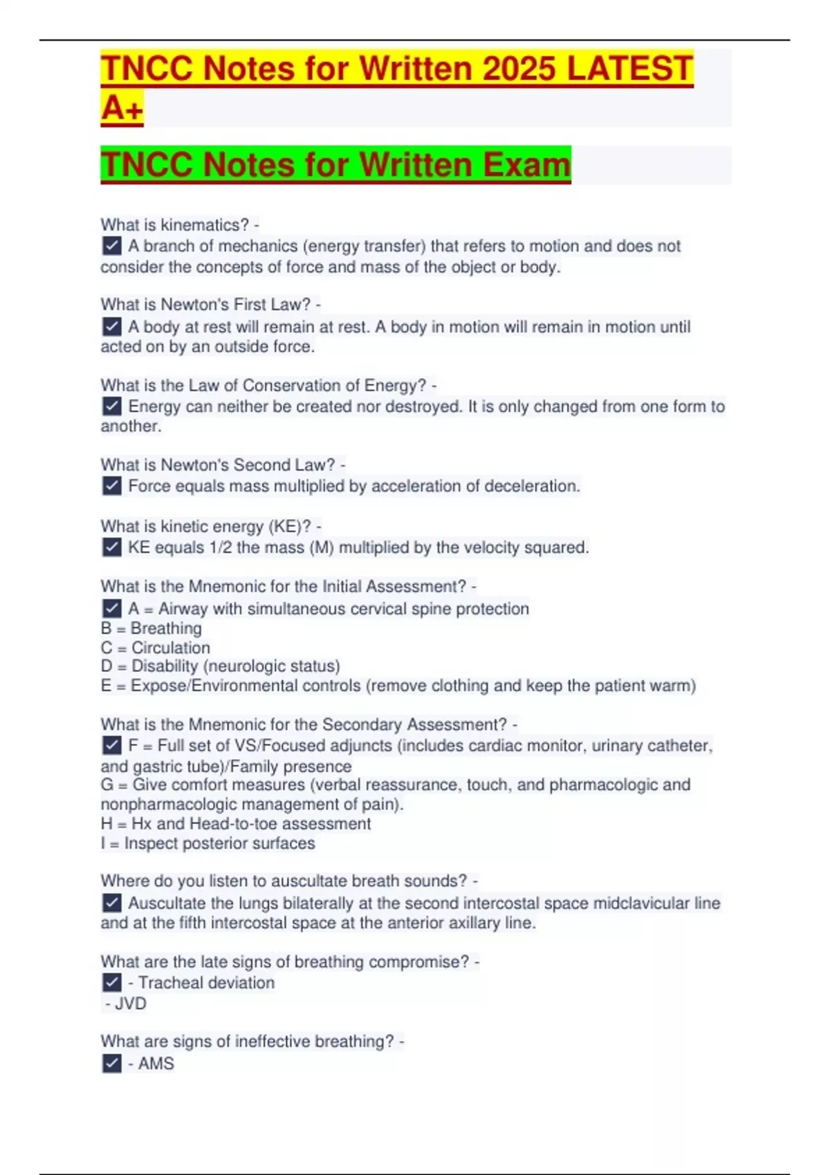 , TNCC Notes for Written 2025 LATEST
