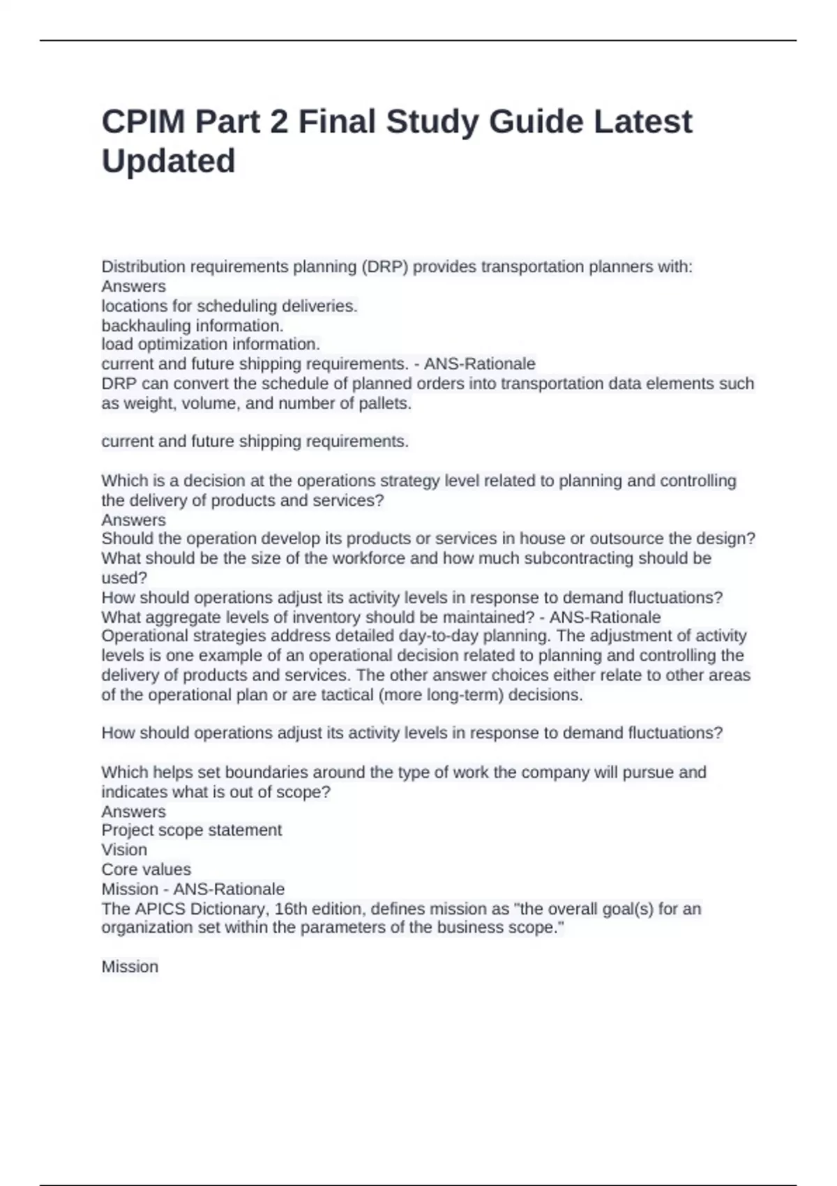 CPIM Part 2 Final Study Guide Latest Updated