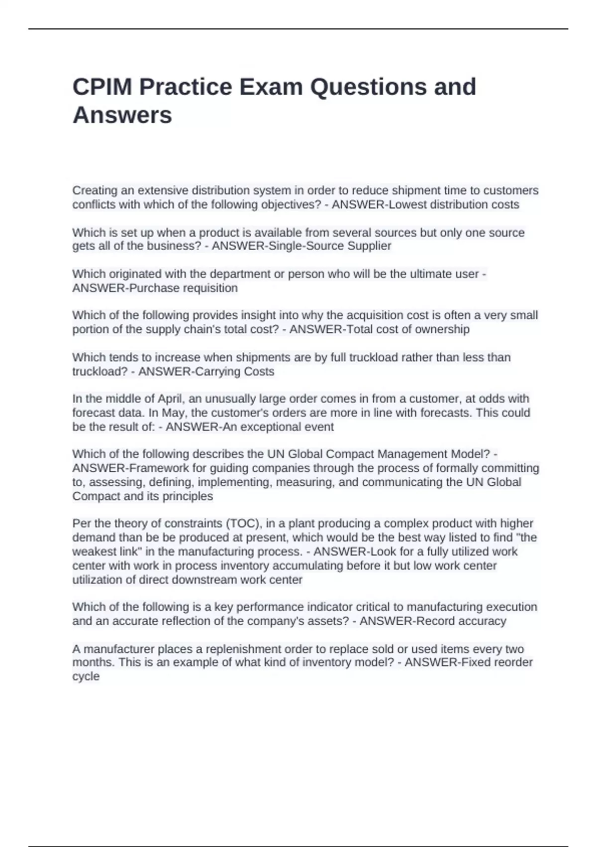 CPIM Practice Exam Questions and