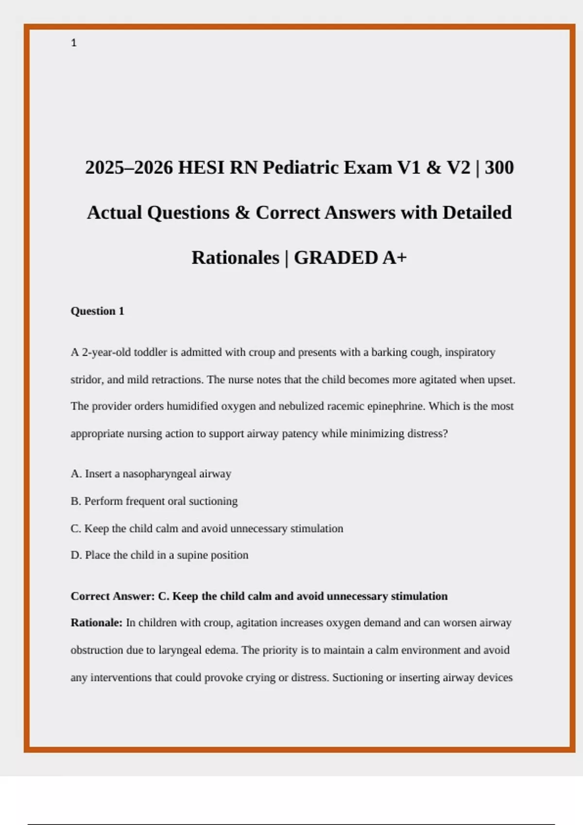 2025–2026 HESI RN Pediatric Exam V1 & V2 | 300