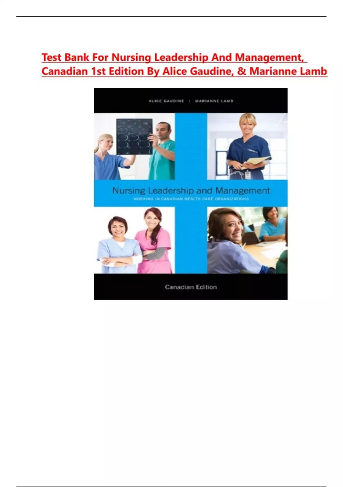 Test Bank For Nursing Leadership and Management, Canadian 1st Edition By Alice Gaudine, & Marianne Lamb All Chapters 1-14 With Latest Edition