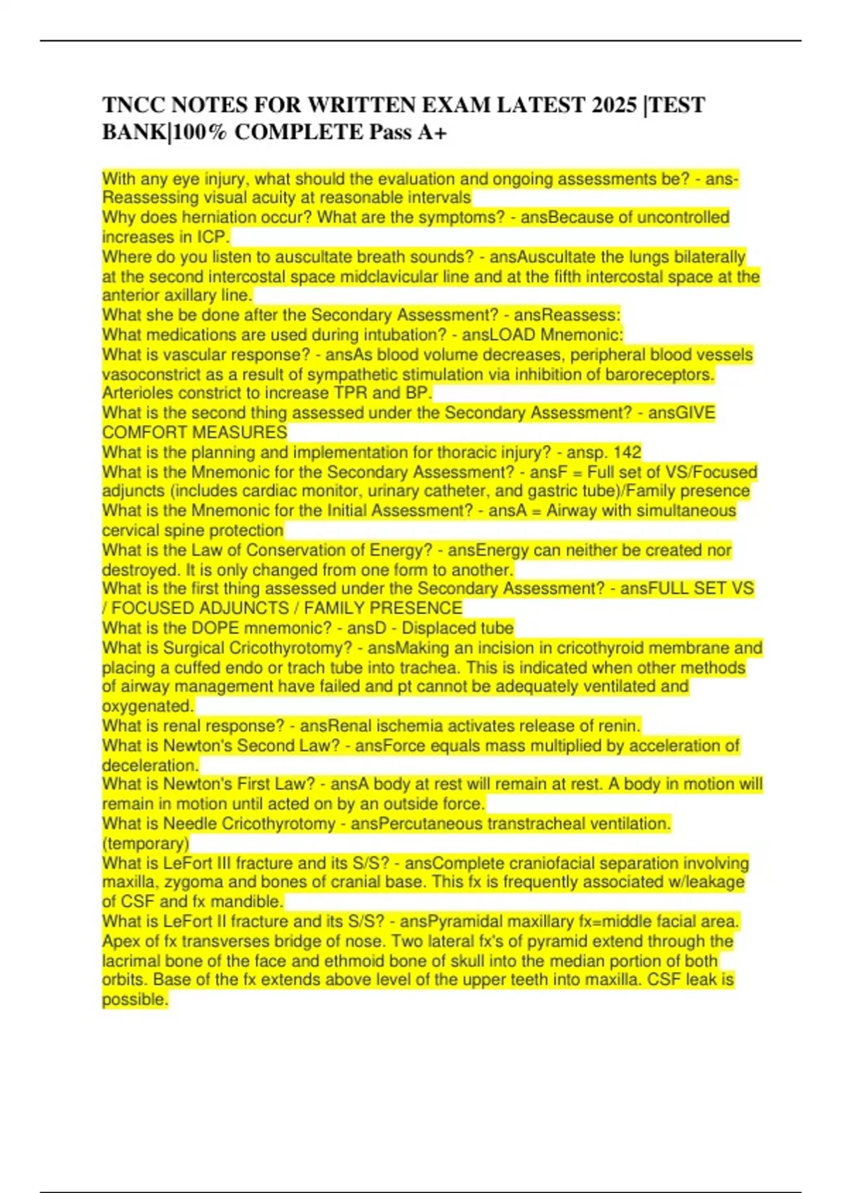 , TNCC NOTES FOR WRITTEN EXAM LATEST 2025 |TEST