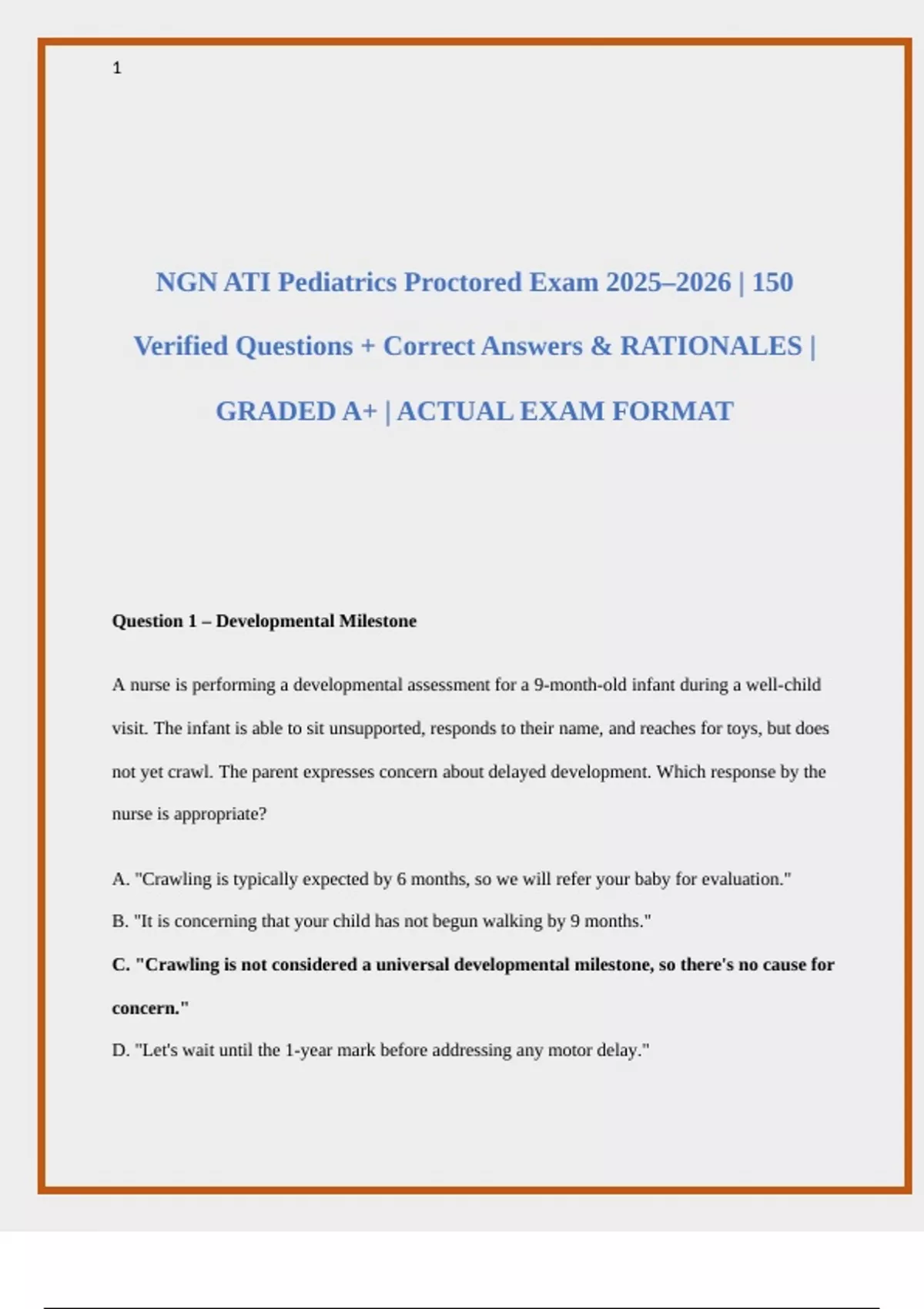 NGN ATI Pediatrics Proctored Exam 2025–2026 | 150