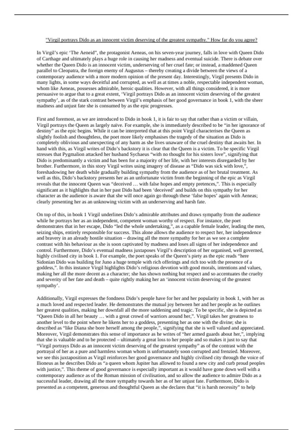 A* HIGH LEVEL MARKS ESSAY FULL MARKS OCR A LEVEL CLASSICAL CIVILISATION DISCUSSING DIDO AS A VICTIM