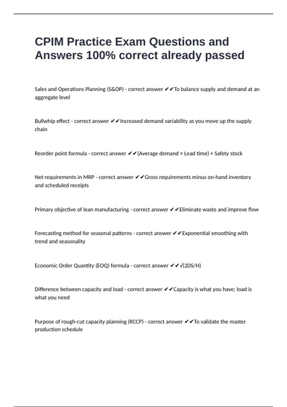 CPIM Practice Exam Questions and Answers 100% correct already passed