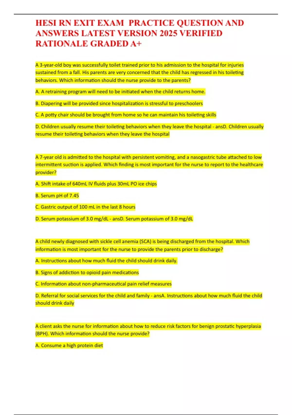 HESI RN EXIT EXAM PRACTICE QUESTION AND ANSWERS LATEST VERSION 2025 VERIFIED