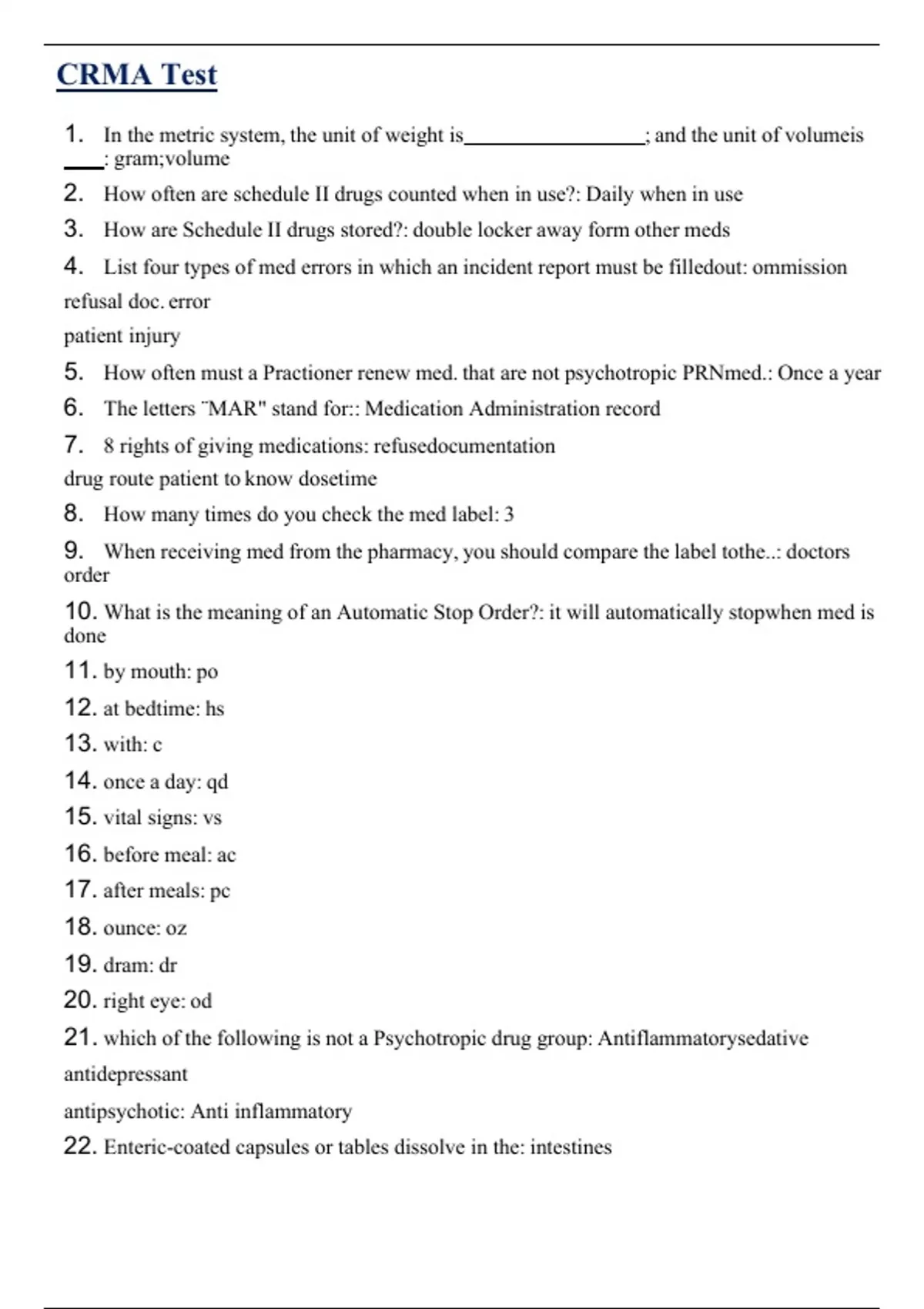5. How often must a Practioner renew med. that are not psychotropic PRNmed.: Once a year