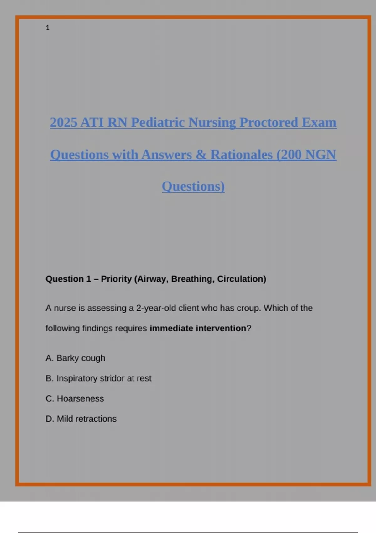 2025 ATI RN Pediatric Nursing Proctored Exam