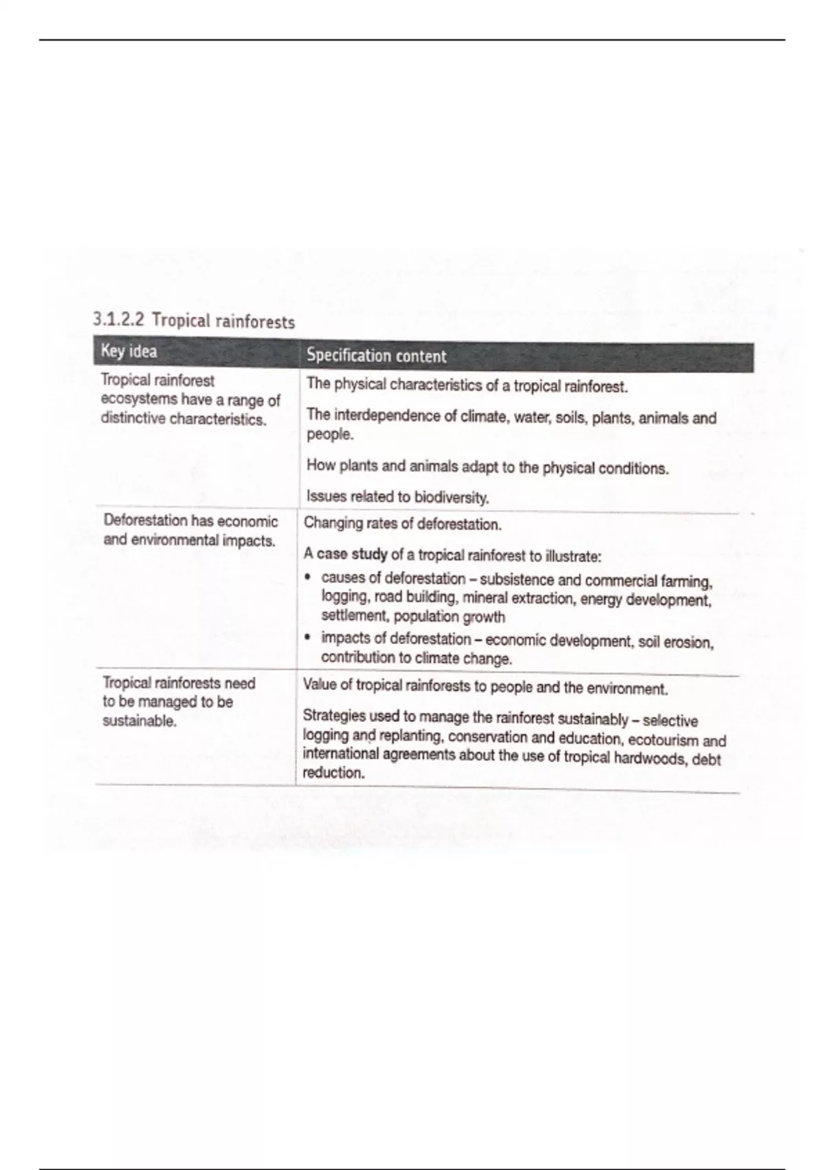 Summary Tropical Rainforests - GCSE Geography AQA