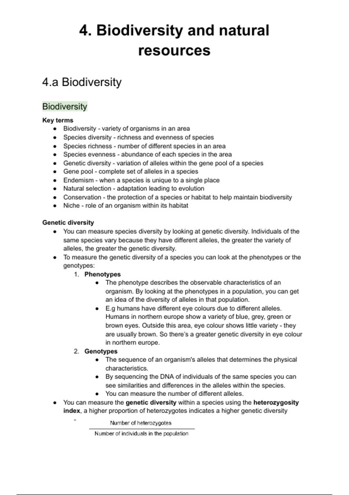 ● You can measure the genetic diversity within a species using the heterozygosity