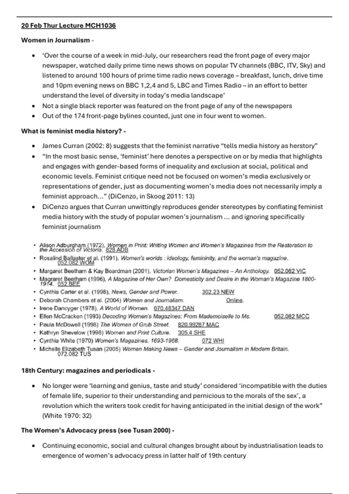 Lecture Notes: Women In Journalism