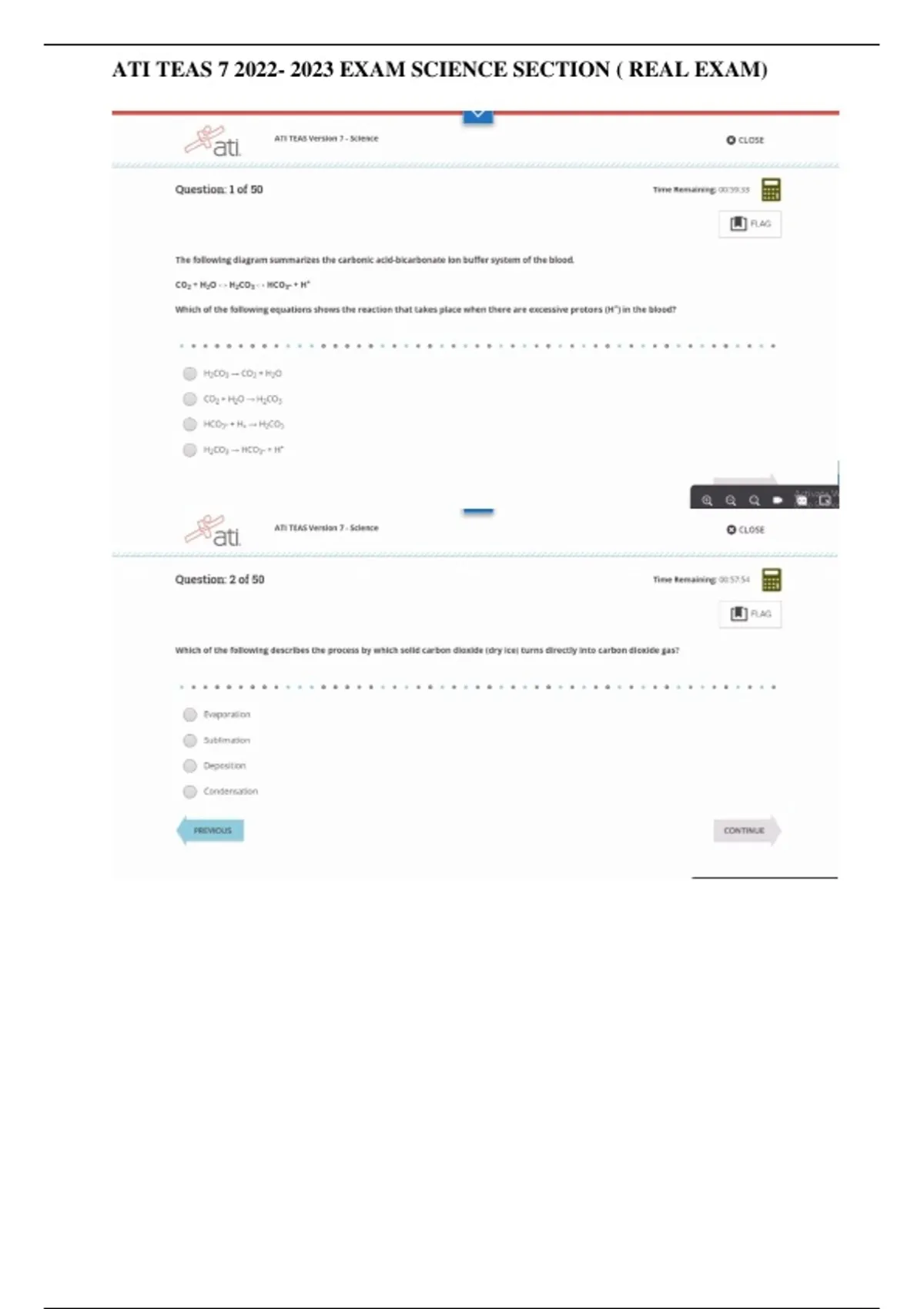 , ATI TEAS 7 2022- 2023 EXAM SCIENCE SECTION ( REAL EXAM)