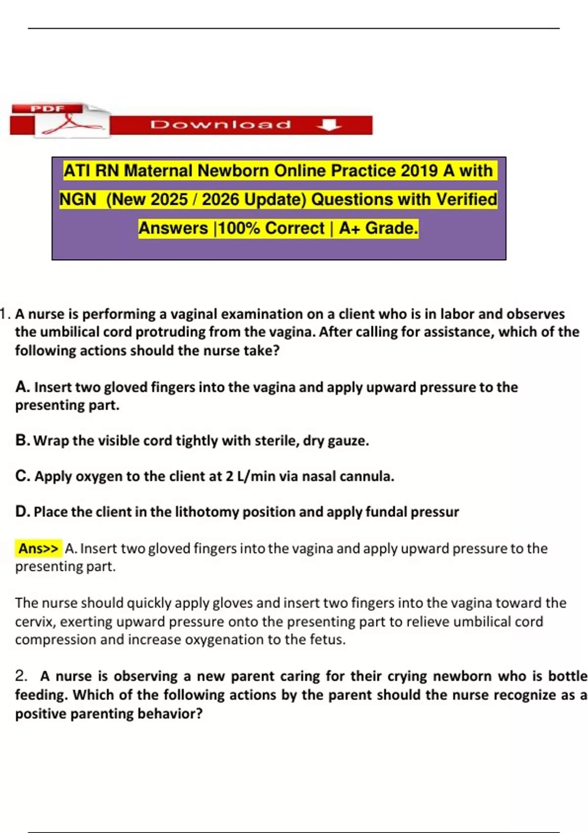 2. A nurse is observing a new parent caring for their crying newborn who is bottle