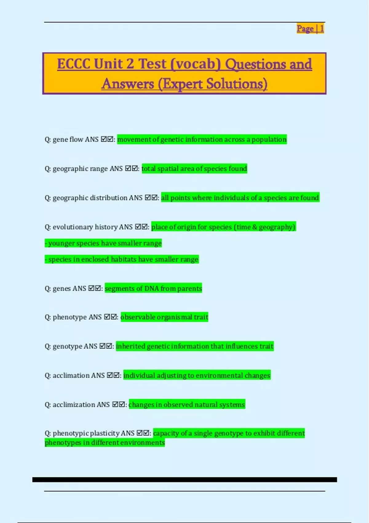 Q: geographic distribution ANS 🗹🗹: all points where individuals of a species are found