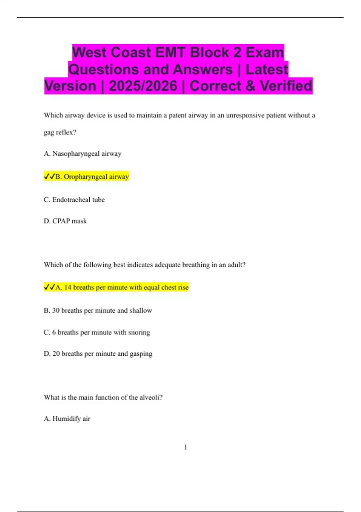 ✔✔A. Observe chest rise