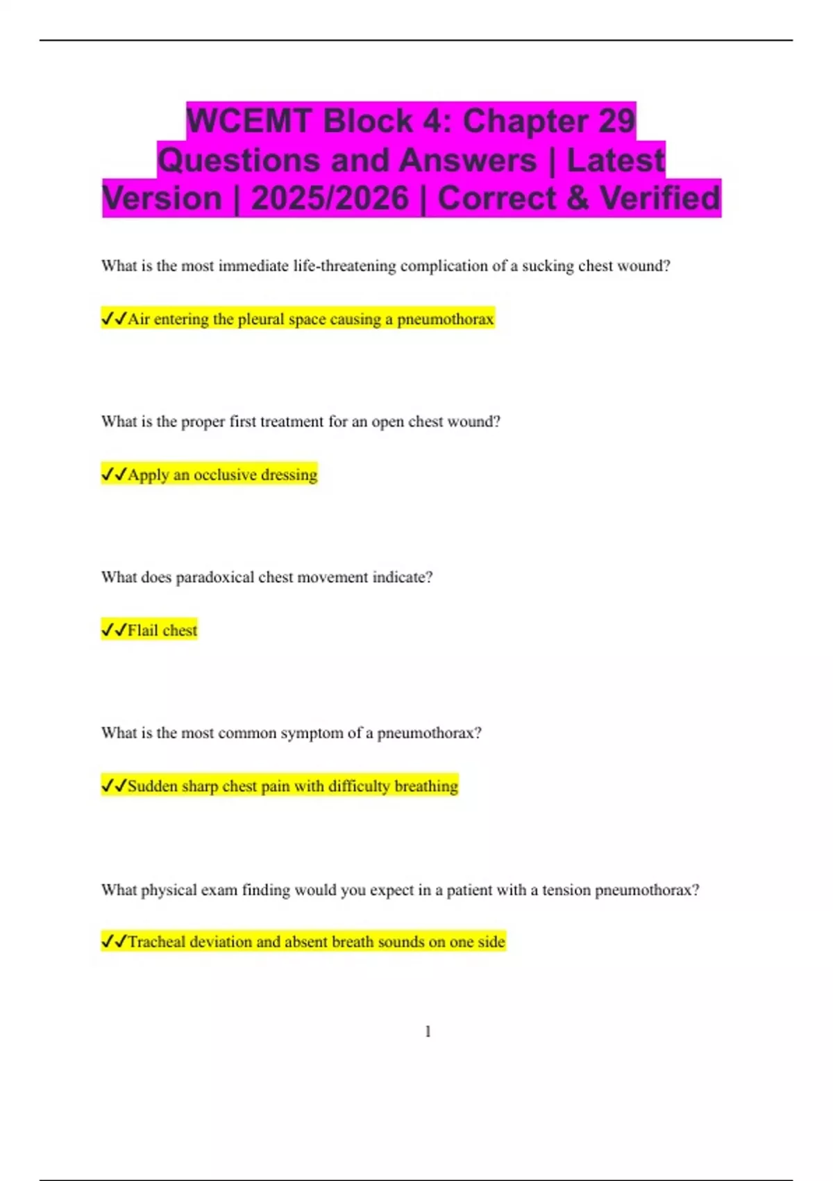 ✔✔Tracheal deviation and absent breath sounds on one side