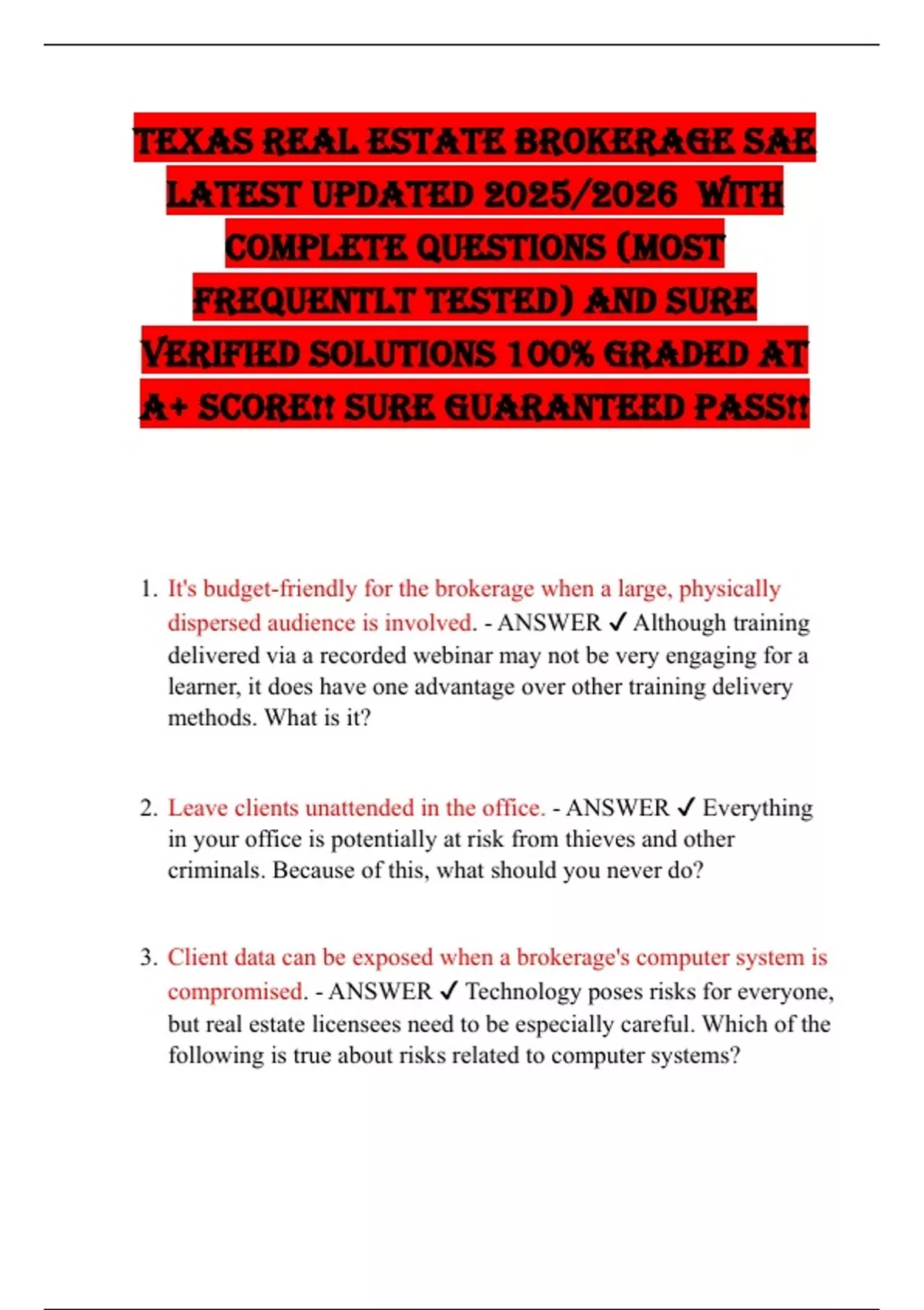 A+ SCORE!! SURE GUARANTEED PASS!!