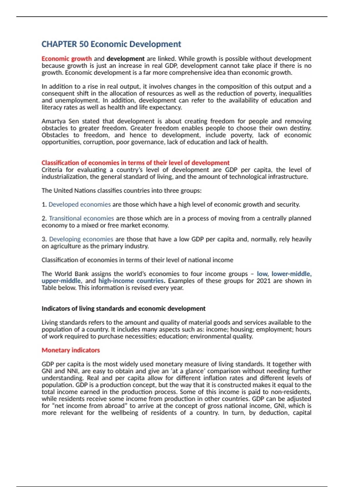 this document well explained everything about chapter 50 which is Economic development, economic growth and different measurements of economic development