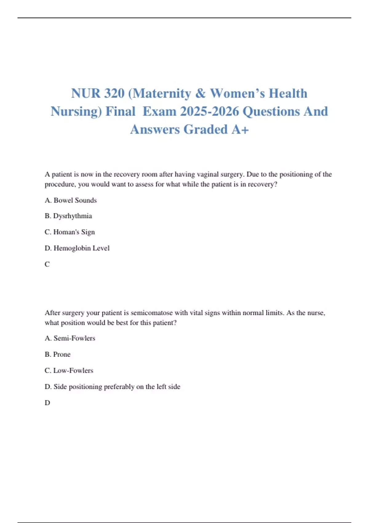 Nursing) Final Exam 2025-2026 Questions And