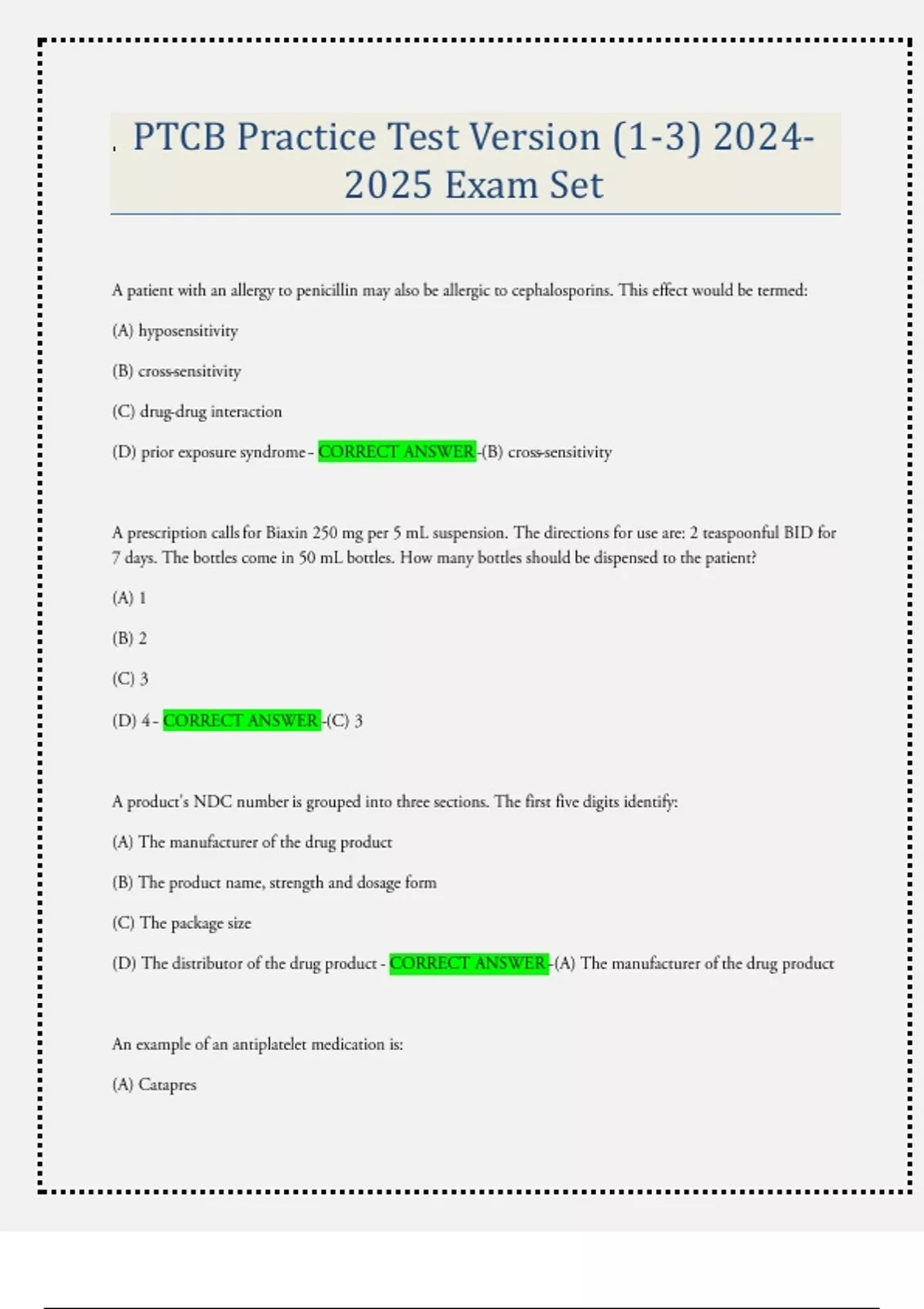 PTCB Practice Test Version (1-3) 2024- 2025 Exam Set