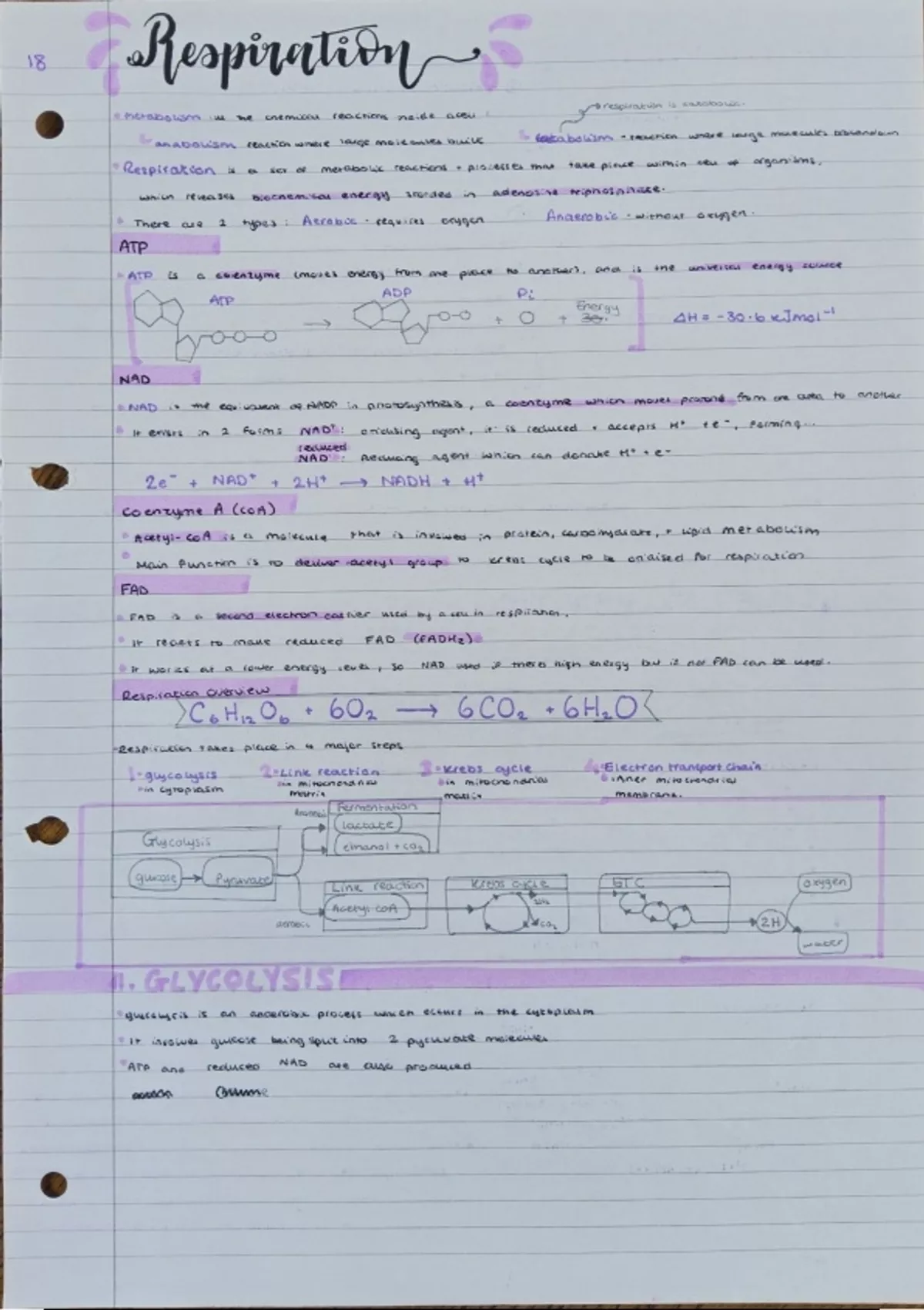 Hand written summary notes including diagrams for the module 5 topic respiration of OCR A Level Biology.