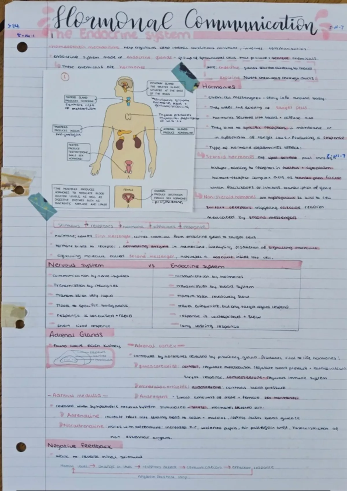 Hand written summary notes including diagrams for the module 5 topic hormonal communication of OCR A Level Biology.