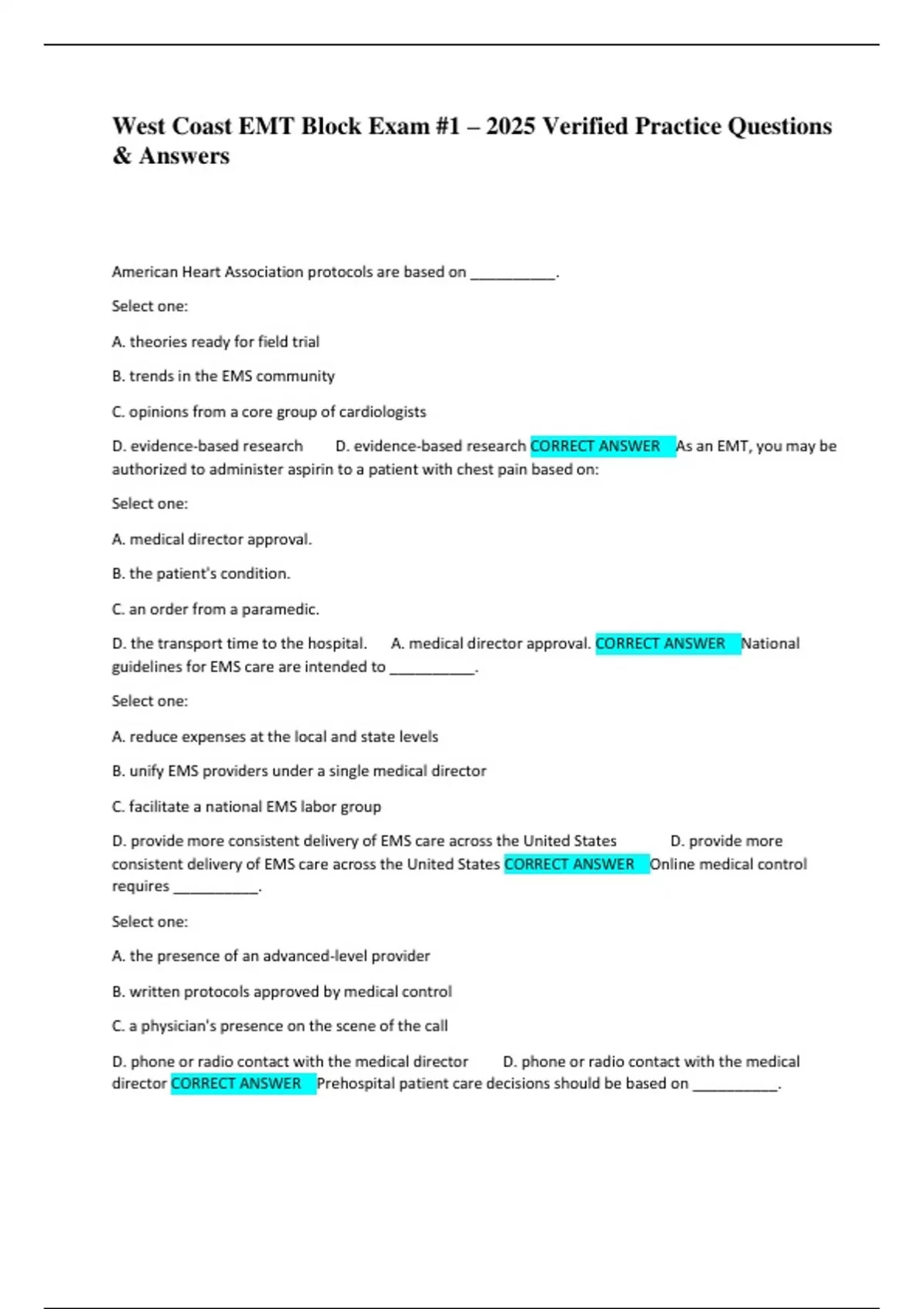D. evidence-based research D. evidence-based research CORRECT ANSWER As an EMT, you may be