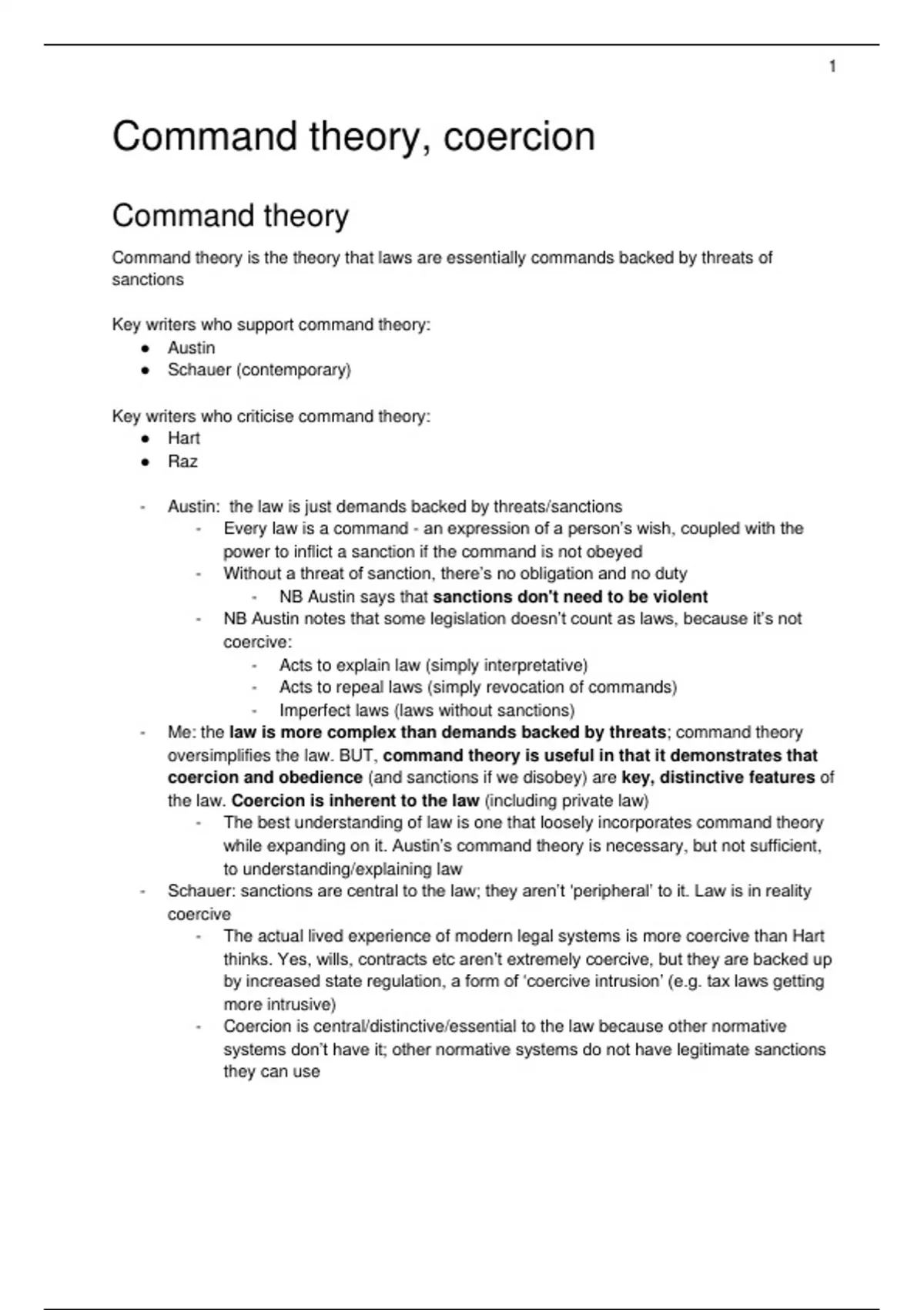 This is a comprehensive and detailed summary on; command theory coercion. An Essential Study resource just for YOU!!