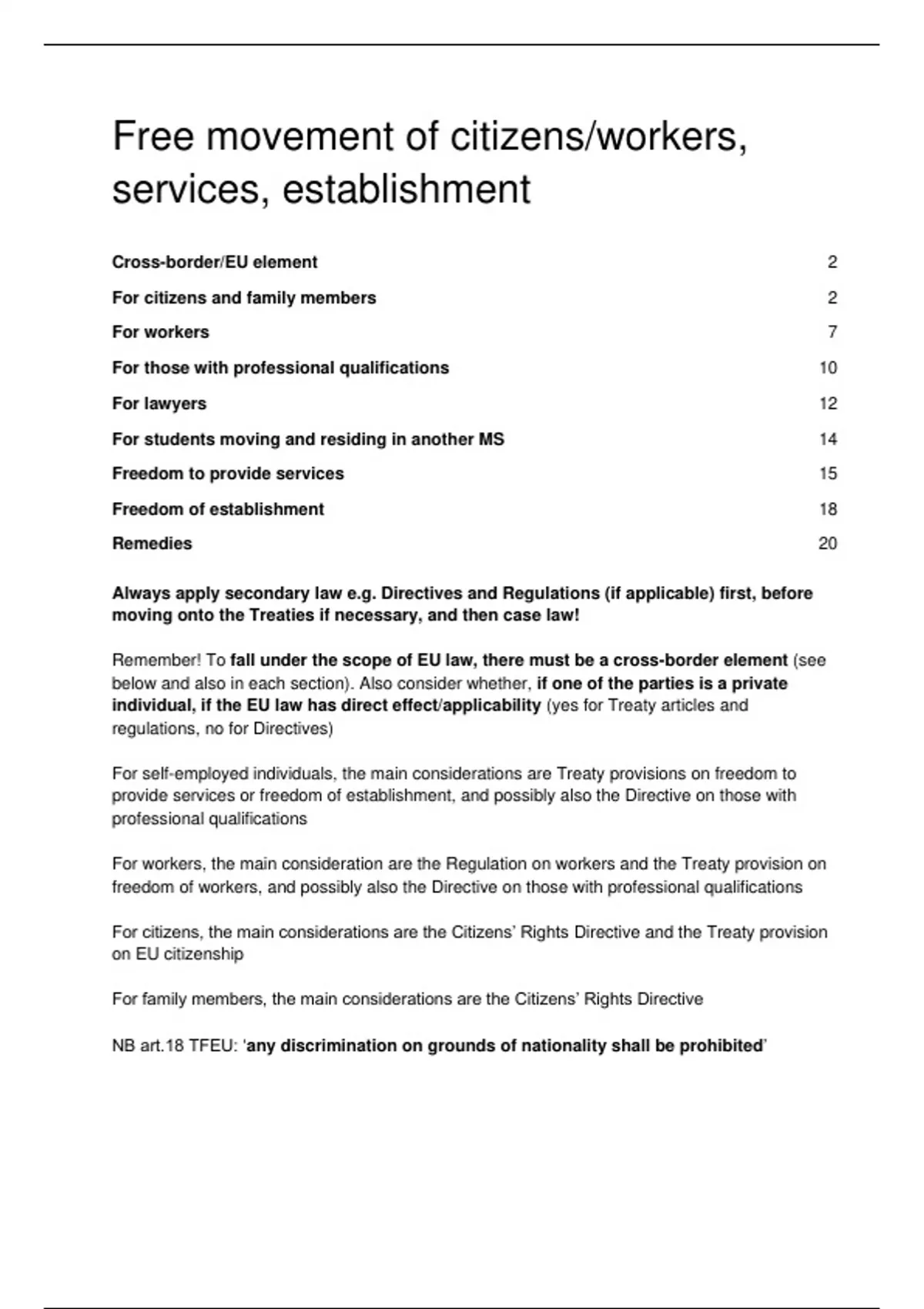 For citizens, the main considerations are the Citizens’ Rights Directive and the Treaty provision