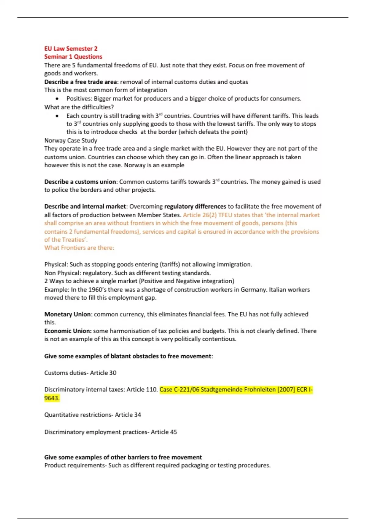 There are 5 fundamental freedoms of EU. Just note that they exist. Focus on free movement of