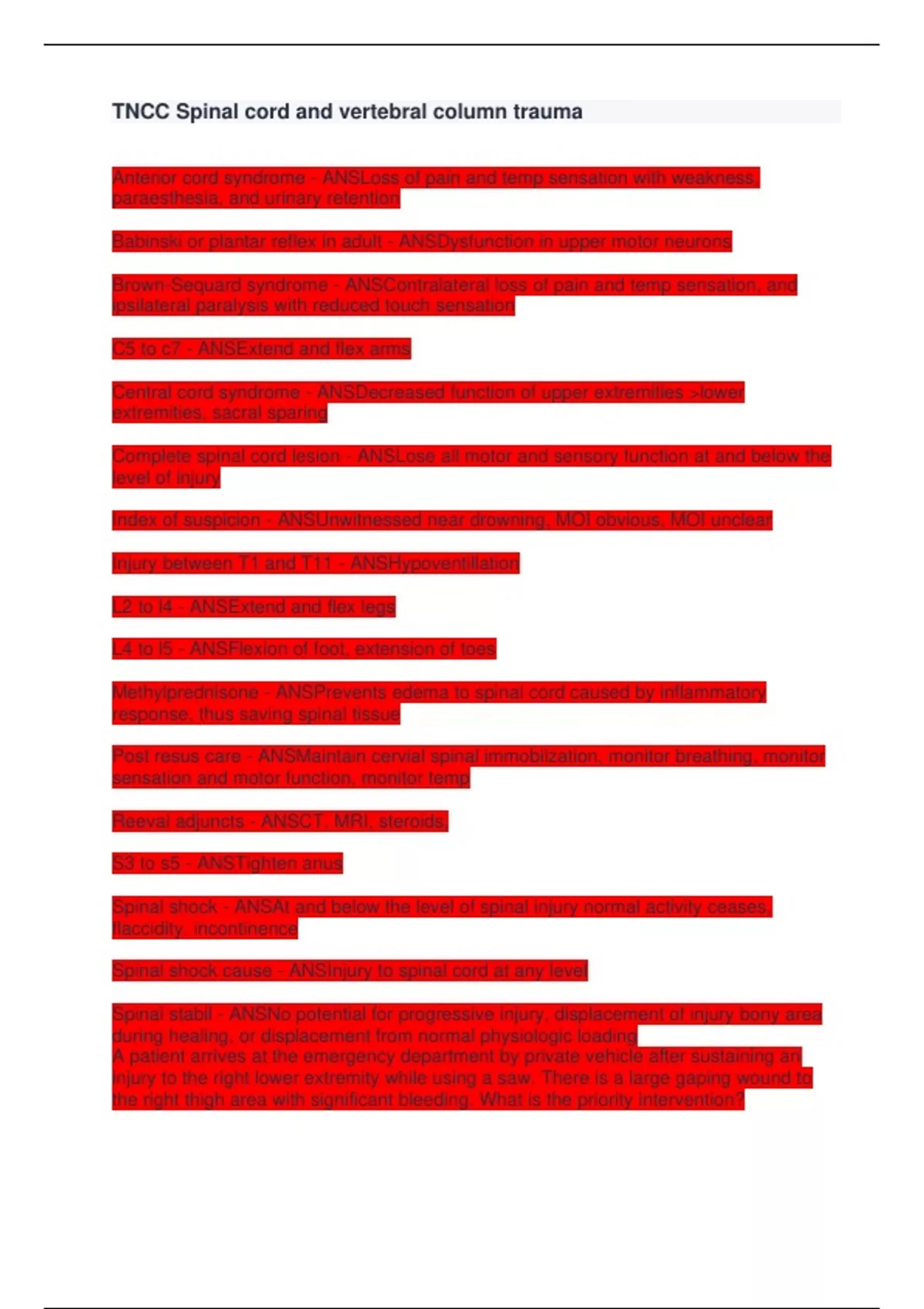 Central cord syndrome - ANSDecreased function of upper extremities >lower